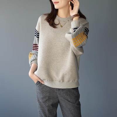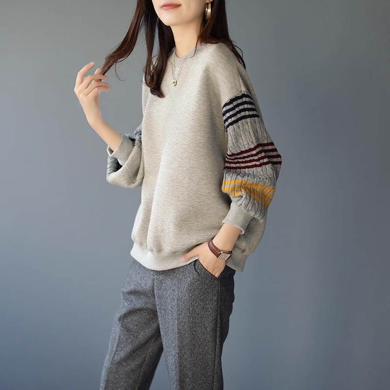 トップス ニット プルオーバー トレーナー レディース 長袖 Uネック ストリート 切り替えデザイン バイカラー 配色 ドッキング かわいい 大人可愛い きれいめ カジュアル 上品 おしゃれ ラフ ガーリー ラブリー キュート アクティブ ナチュラル ボーダー 春 秋 デート お出かけ イベント 旅行 女子会 休日 カフェ 重ね着 コーデ 楽ちん 体型カバー 普段使い 着回し レイヤード モテ 清楚 トレンド 流行 インスタ映え 定番 M L XL 2XL 3XL 小さいサイズ 大きいサイズ グレー