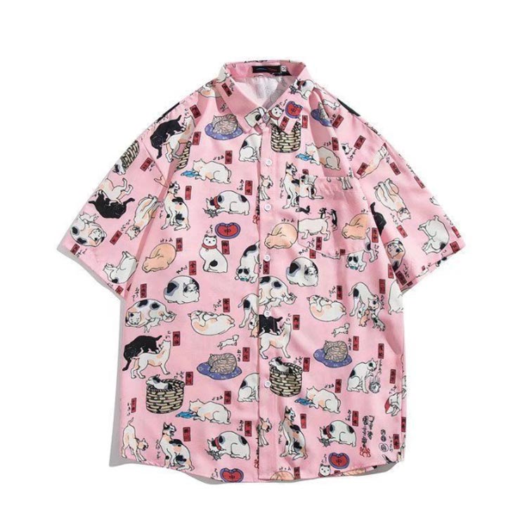 猫柄 アロハシャツ ゆったり ワイシャ