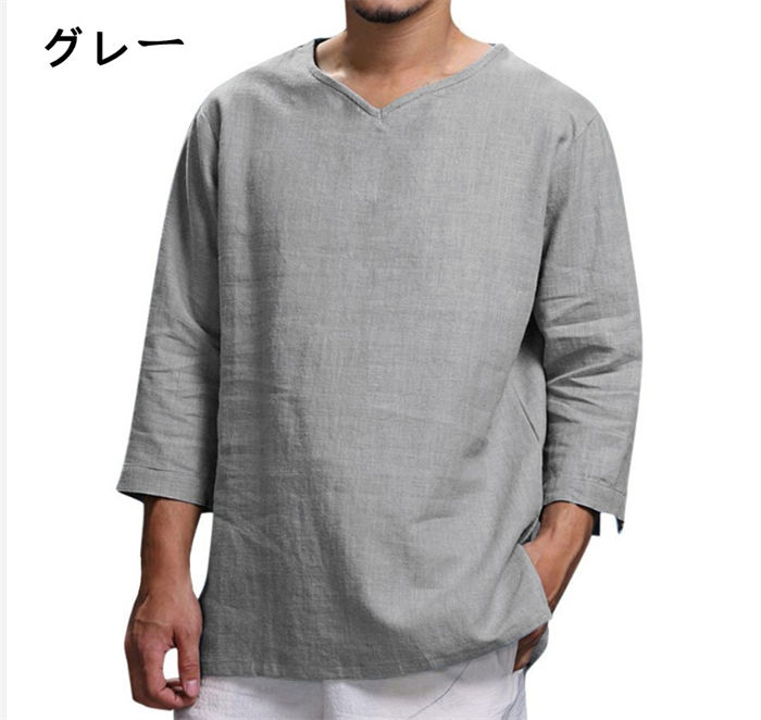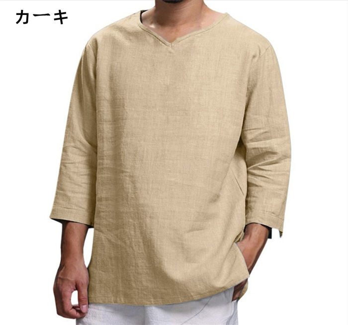 メンズ 綿麻シャツ プルオーバー リネ
