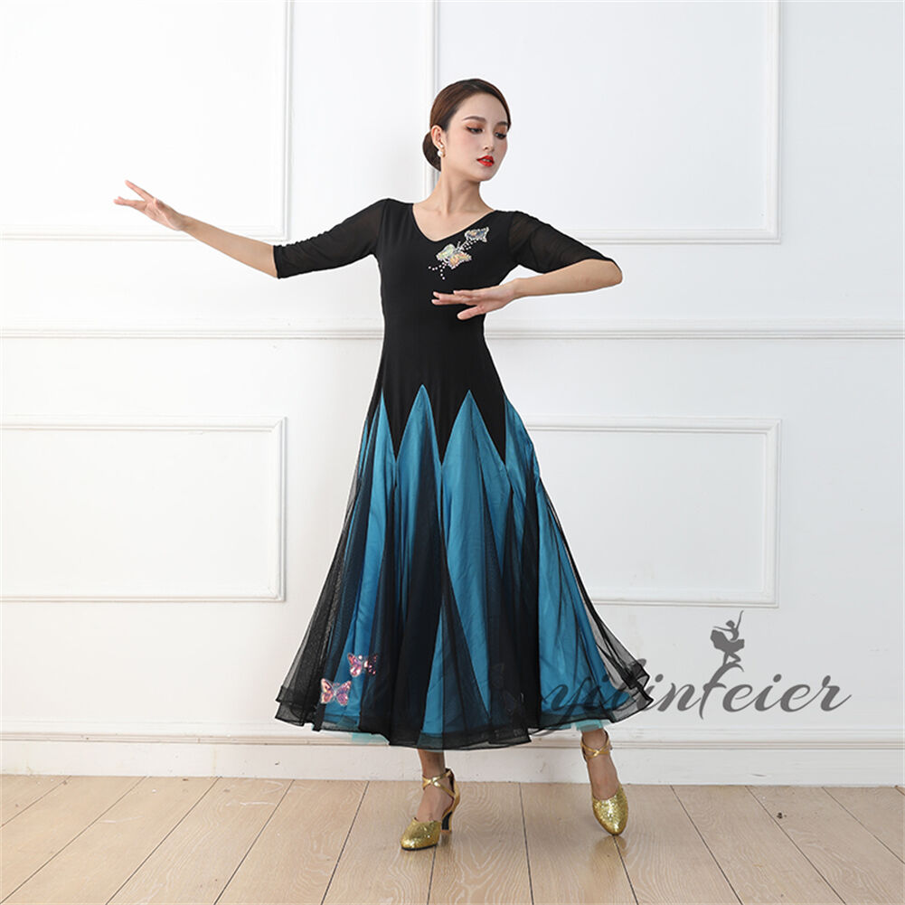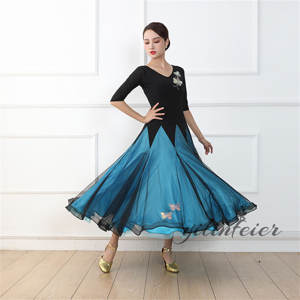 社交ダンス レディース ダンスドレス 衣装 ワルツ ワンピース イベント 大きい裾 モダン ドレス 社交ダンス衣装 広がる裾 スタンダード レッスン着 演出用 高級感 踊りドレス 大人気