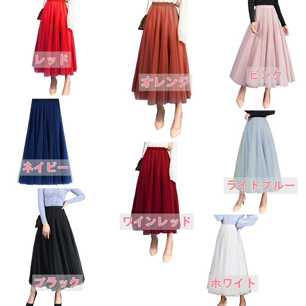 表記寸法と実寸値の多少の誤差はご了承ください。特徴 ふんわりとしたチュールプリーツが、癒しフェミニンな雰囲気を漂わせるスカート。ロマンティックに広がるシルエットで、お洒落で可愛い雰囲気たっぷりしたロングスカートが登場しました。ふわっとした重ねフリルが体型カバーしつつ、トレンドライクなロング丈で、どなたでも美脚度アップ!特徴 シンプルな無地デザインはどんなファッションとも合わせやすく、幅広いコーディネートに大活躍。お出かけはもちろん、通勤、通学も幅広く使えるアイテムです。季節問わずオールシーズン着まわせるアイテムです。秋冬はニットと合わせて、春夏になったらTシャツなどのシンプルなトップスにあわせていただくと長く使えて便利のプリーツスカートです。用途 OL、通勤、通学、お出かけ、パーティー、披露宴、同窓会、発表会、主役になる大人上品スカートです。注意事項 製造工程の関係上、各採寸箇所実寸(平置き)より【約-2cm~+2cm】程度は誤差の許容範囲とさせて頂いております。※撮影環境やパソコンのディスプレイなどの影響により色が若干違って見える場合もあります。
