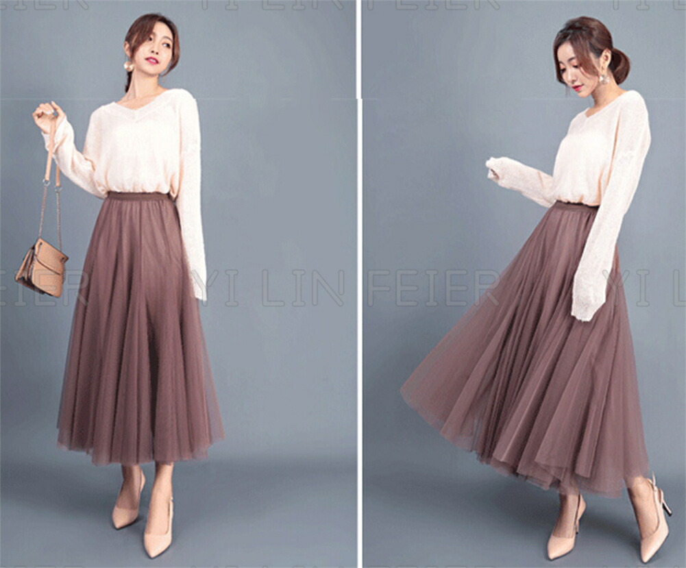 二重チュールの十分なプリーツが入っていて、おしゃれで可愛い雰囲気たっぷりしたロングスカートが登場しました。
