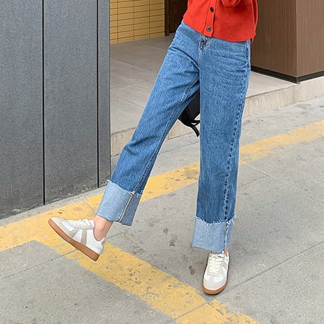 デニムパンツ ビジュー付き