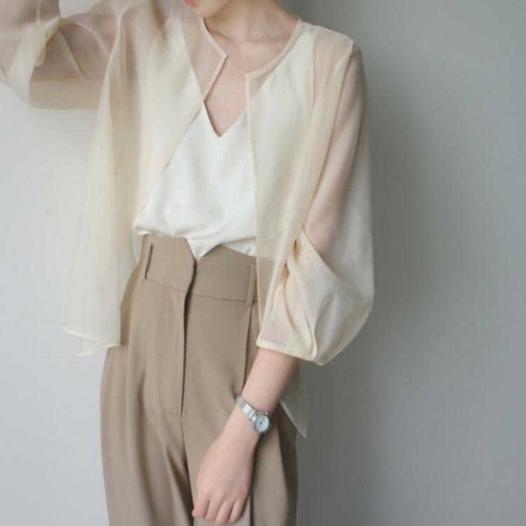 シアートップス ノーカラー レディース