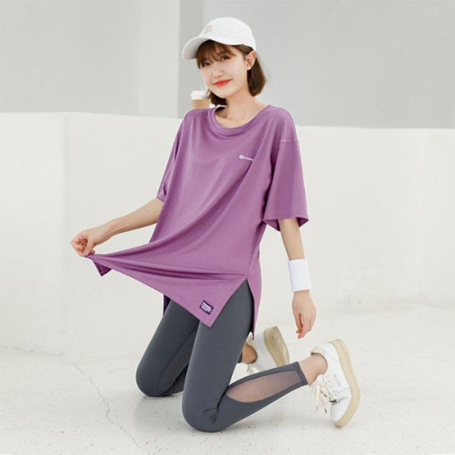 ヨガトップス ロング丈 Tシャツ 運動