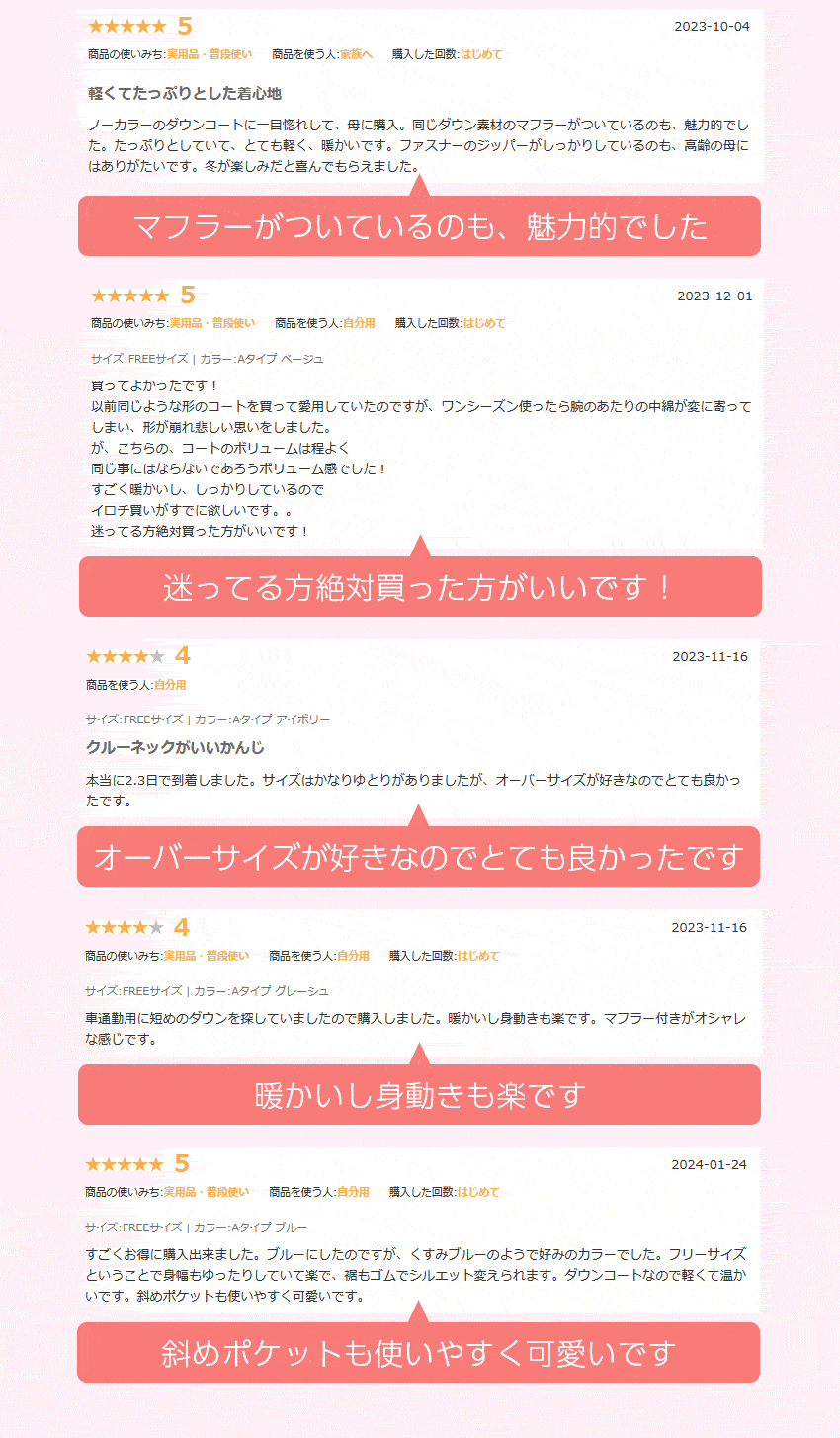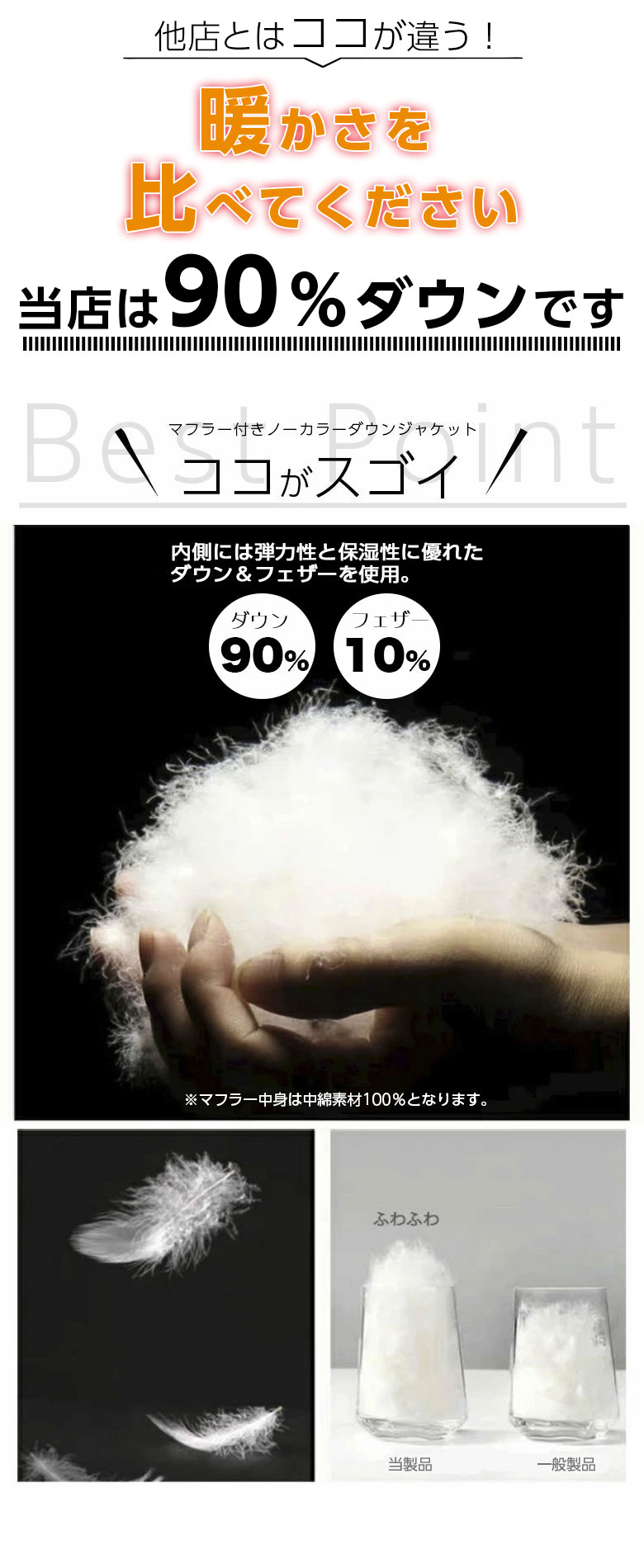 軽くてあったか襟なし ダウン90% ダ