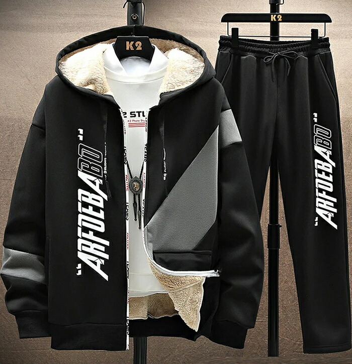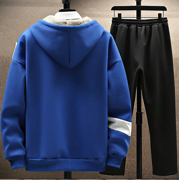 商品名:裏起毛 ジャージ スウェット メンズ 上下セット パーカー ロングパンツ ジョガーパンツ セットアップ フード付き ルームウェア 厚手 裏ボア もこもこ 2点セット 暖かい アウトドア 防寒対策 防寒 運動着 部屋着 釣り 秋 冬 無地 大きいサイズ