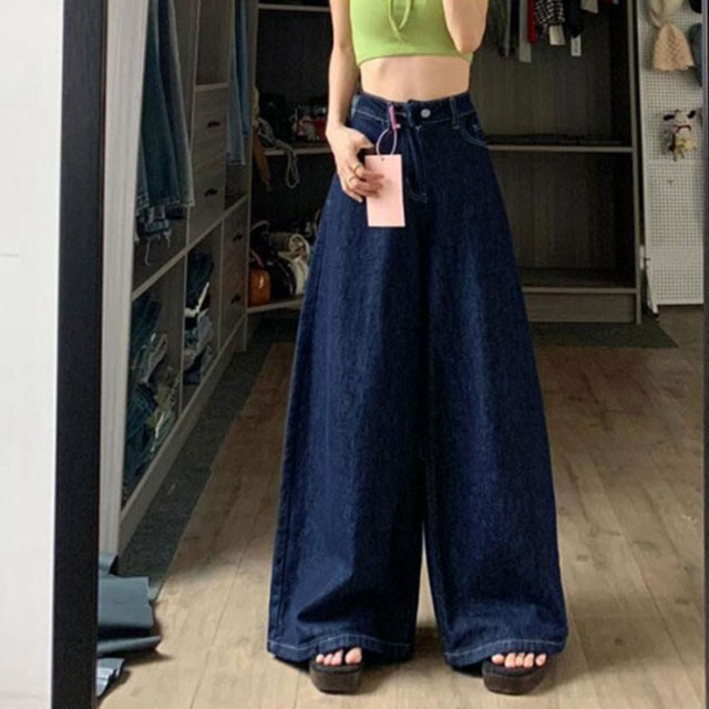 脚長デニムパンツ ルーズ ジーンズ ワ