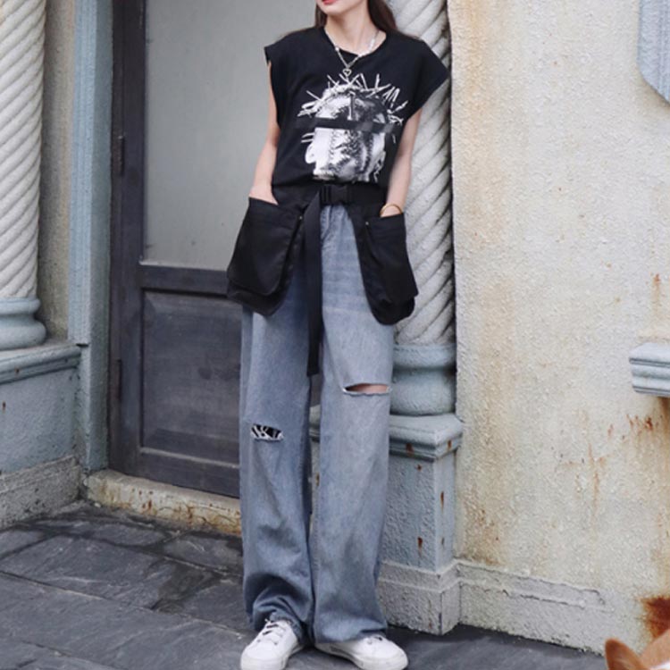 デニムパンツ ビジュー付き