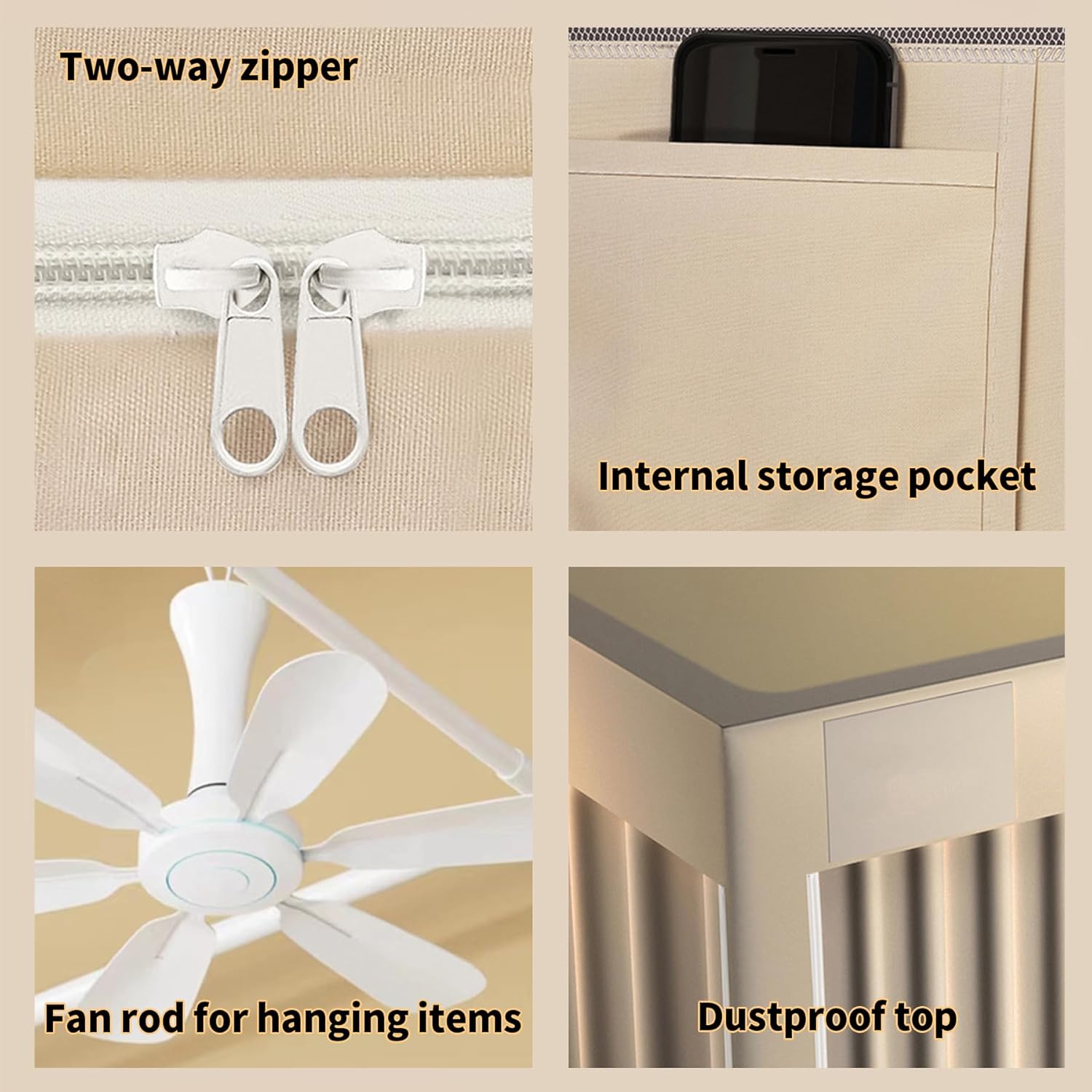 【人間味のある詳細】ベッドカーテンキャノピーフレームは双方向ジッパーで設計されており、プライベートスペースをより良く作成できます。 ベッド天蓋の内側にも収納ポケットがあります。 4隅ポストベッドキャノピーフレームのファンロッドは、ファンを吊るすだけでなく、他のアイテムを吊るすこともできます。 ツイントップ二段ベッドテントキャノピーに埃が落ちるのを防ぐために、当社の二段ベッドキャノピートップには防塵布も装備されています。