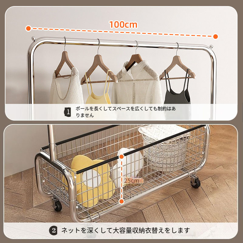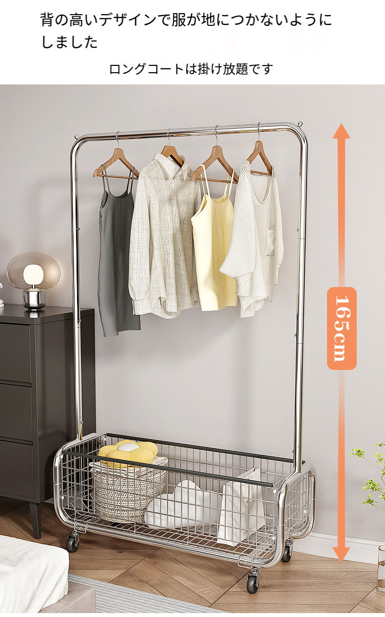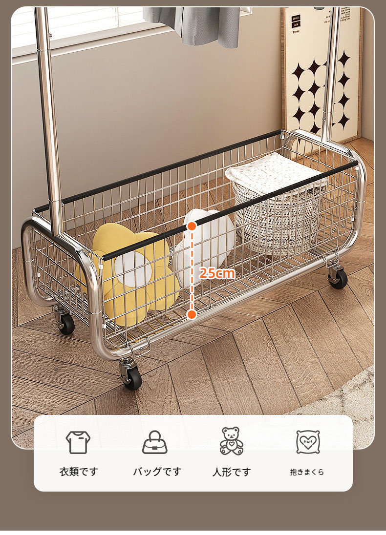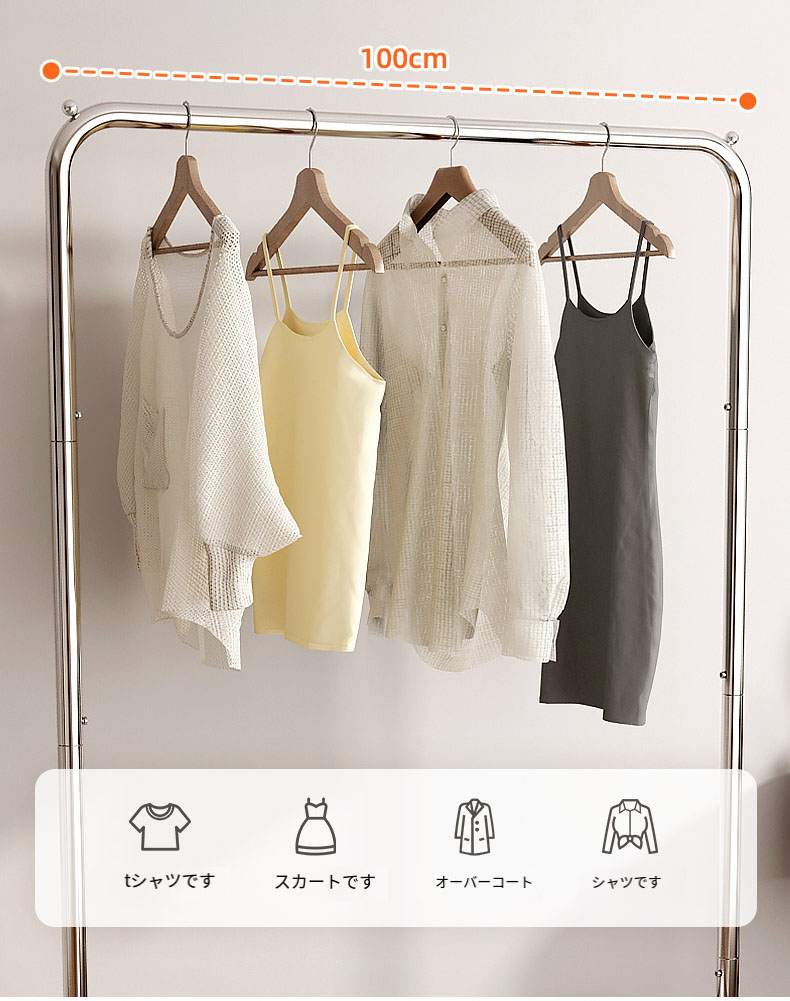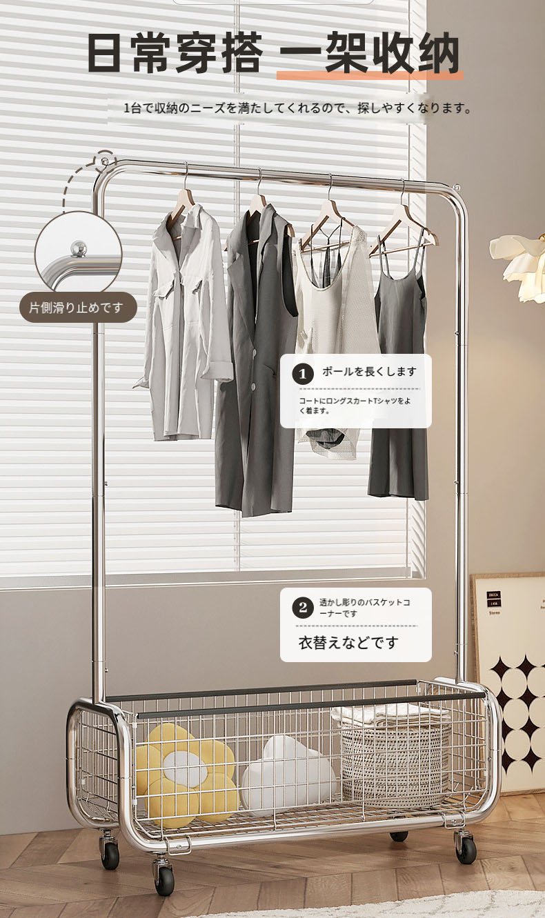 ハンガーラックキャスター付き 衣帽掛け 寝室用 ベッドサイドクインテリア 寝具 収納 収納家具 本棚 ラック カラーボックス ハンガーラック コートハンガー