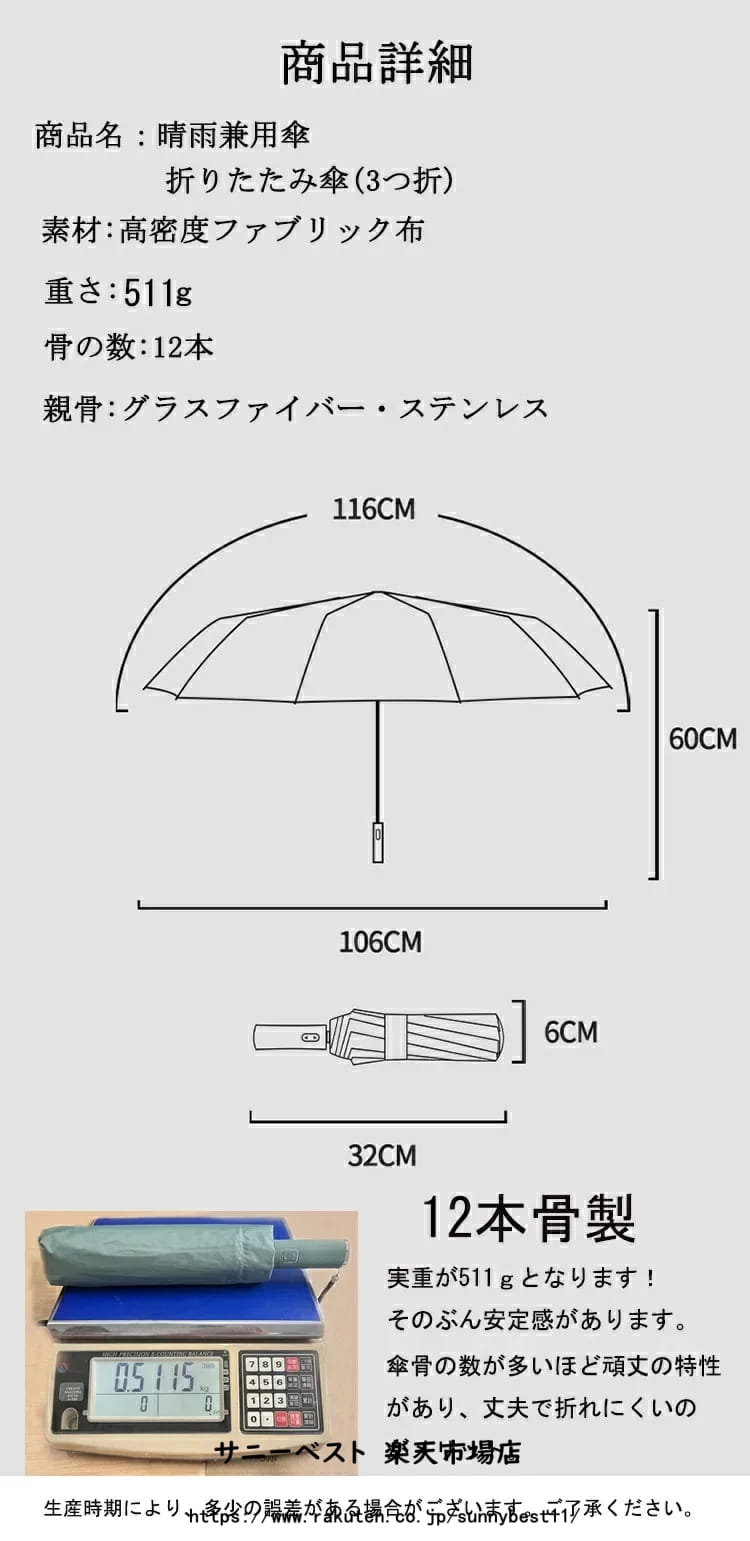 日傘 折りたたみ 完全遮光 UVカット