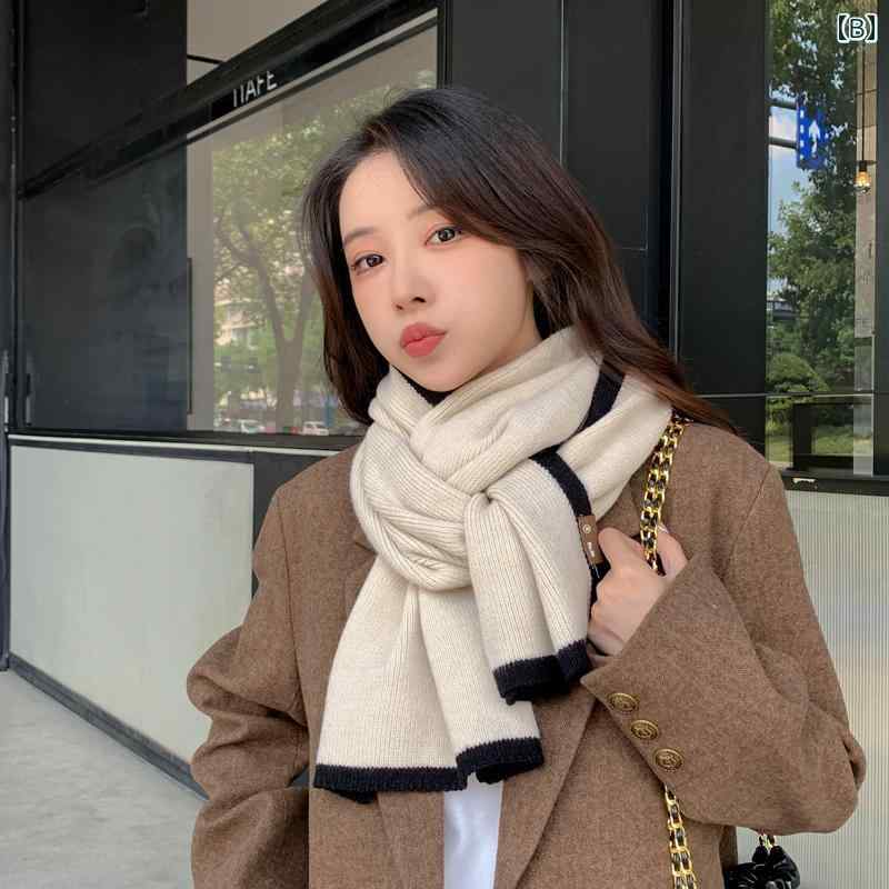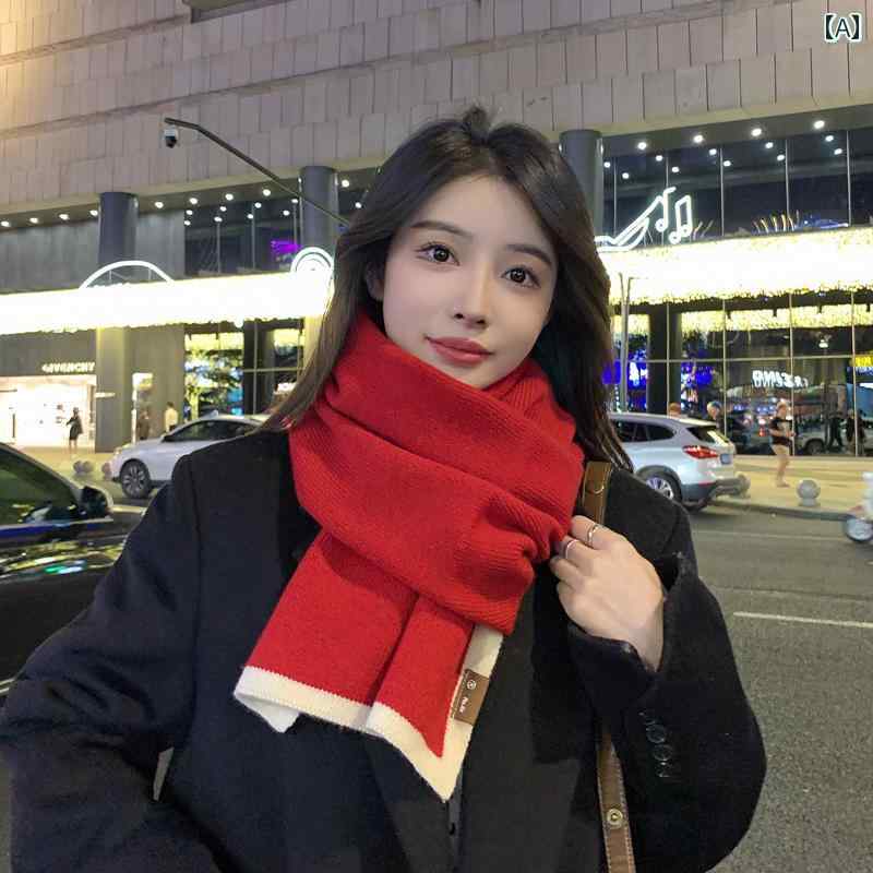 レディース ファッション 秋冬 ニット スカーフ マフラー 女性 韓国 ネックウォーマー かわいい おしゃれ 35cm×160cm 無地 厚手 シンプル