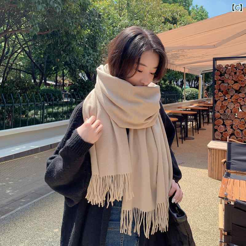 レディース ファッション 秋冬 ニット スカーフ マフラー 女性 韓国 ネックウォーマー かわいい おしゃれ 70cm×200cm 無地 ショール 厚手 シンプル ロング