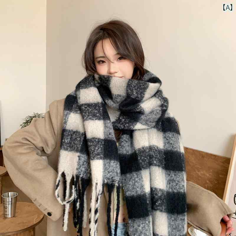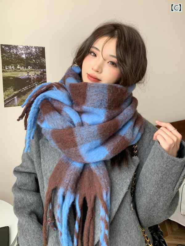 レディース ファッション 秋冬 ニット スカーフ マフラー 女性 韓国 ネックウォーマー かわいい おしゃれ 200cm チェック ショール シンプル ロング