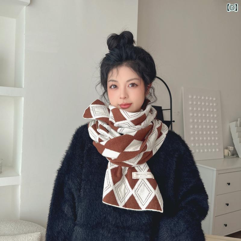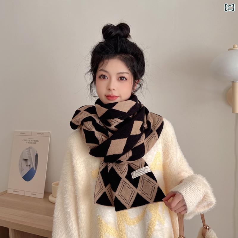 レディース ファッション 秋冬 ニット スカーフ マフラー 女性 韓国 ネックウォーマー かわいい おしゃれ 35cm×180cm チェック シンプル