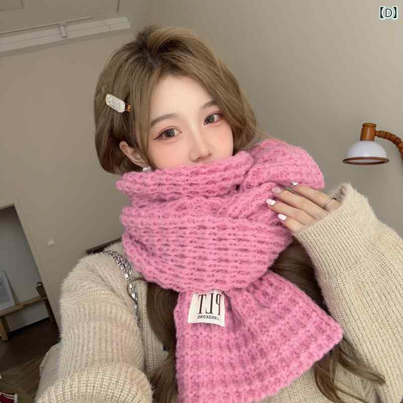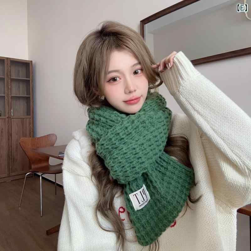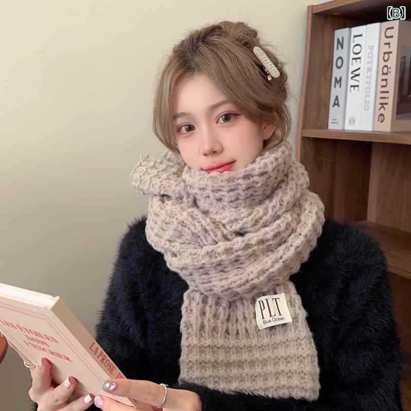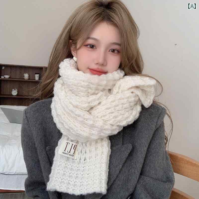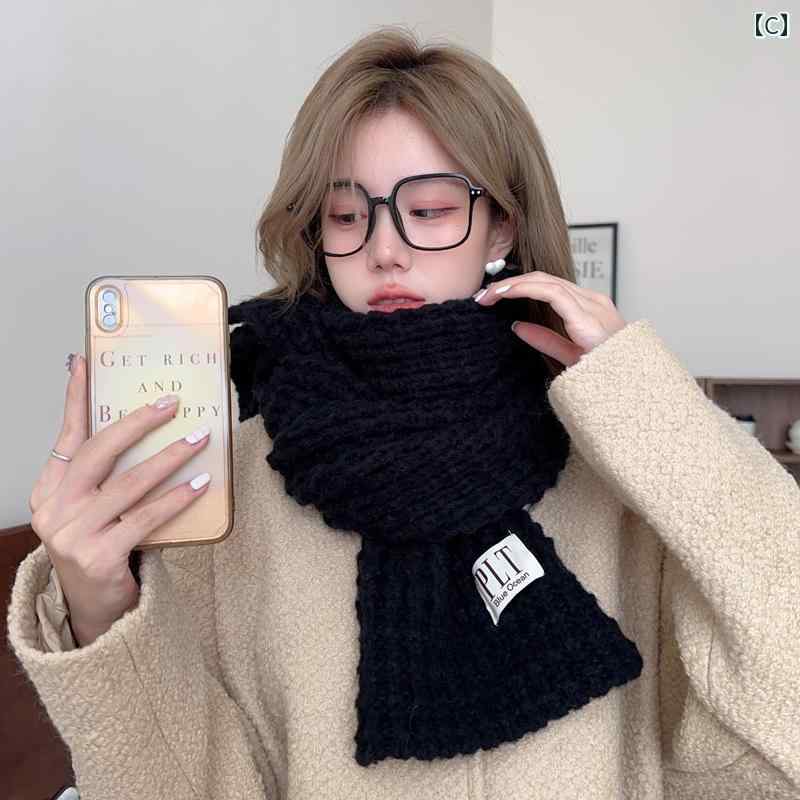 レディース ファッション 秋冬 ニット スカーフ マフラー 女性 韓国 ネックウォーマー かわいい おしゃれ 30cm×180cm シンプル 無地