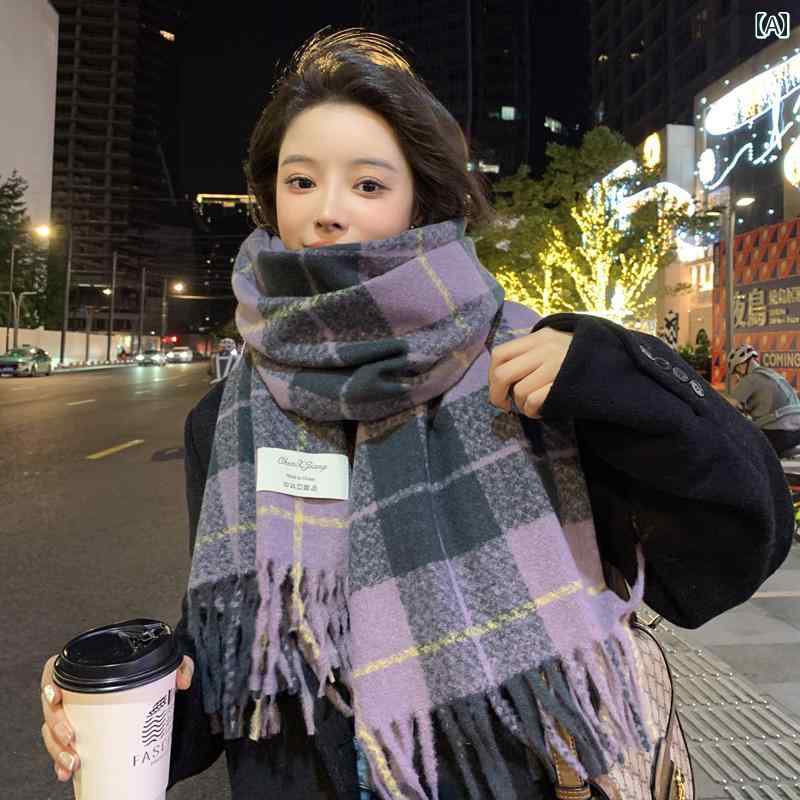 レディース ファッション 秋冬 ニット スカーフ マフラー 女性 韓国 ネックウォーマー かわいい おしゃれ 70cm×200cm チェック シンプル ロング