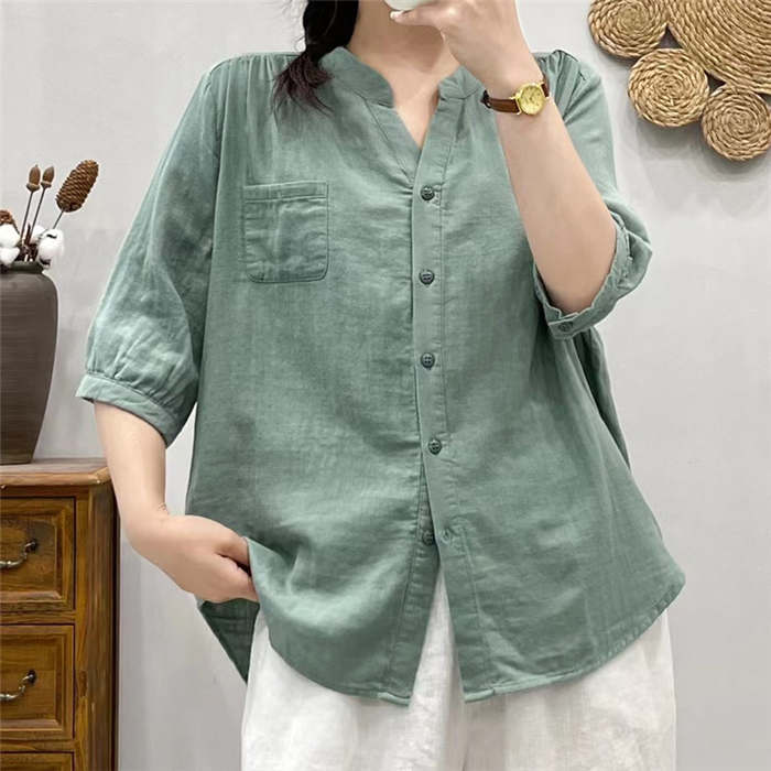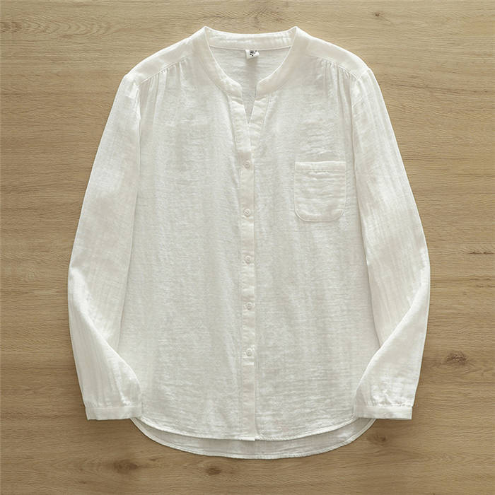 長袖追加 バンドカラー ガーゼ シャツ