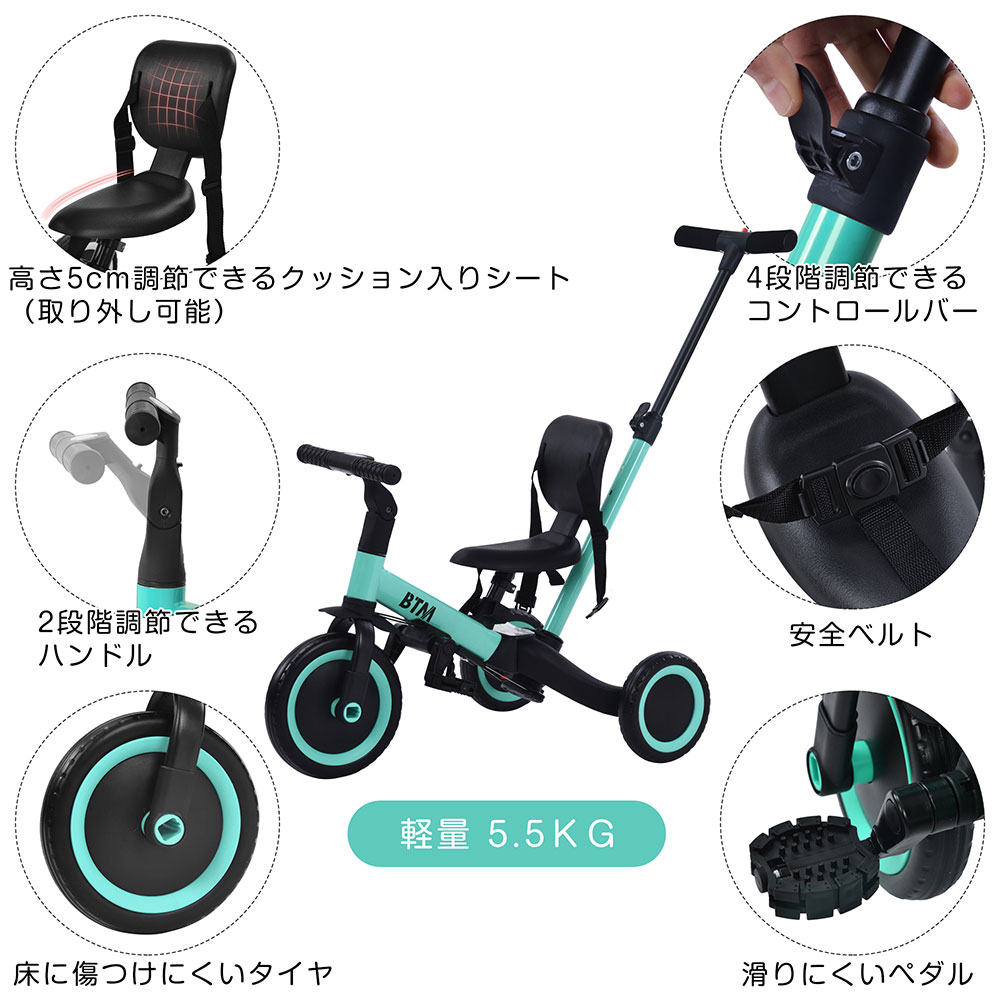 子供用三輪車 4in1 4WAY 足けりバイク 押し棒付き ランニングバイク 1歳 2歳 3歳 4歳 5歳 自転車 おもちゃ 乗用玩具 幼児用 軽量 可愛い キッズバイク お誕生日
