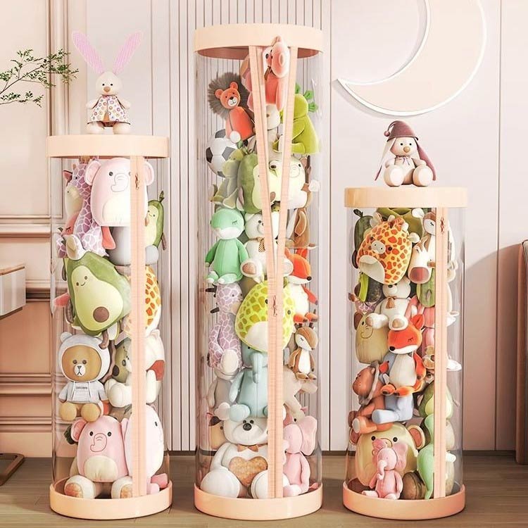 透明円柱のぬいぐるみ収納ケース 抱き枕