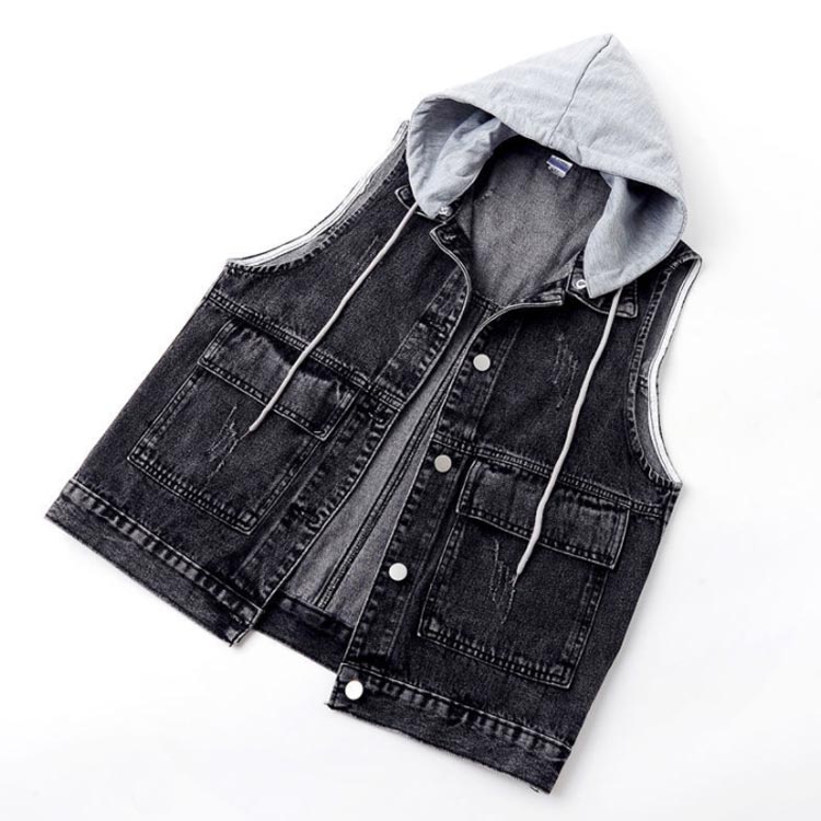 デニム ベスト レディース フード付き