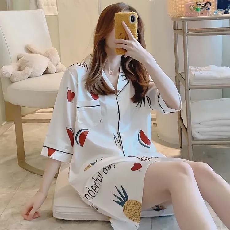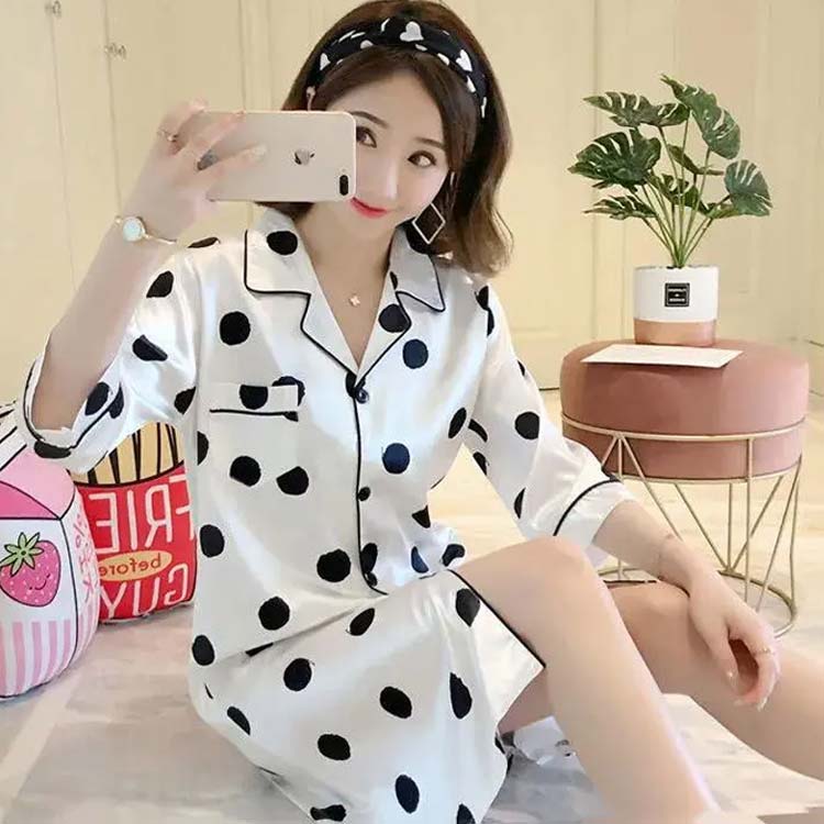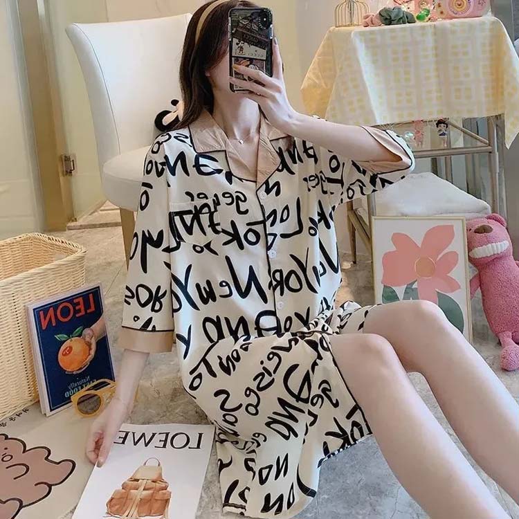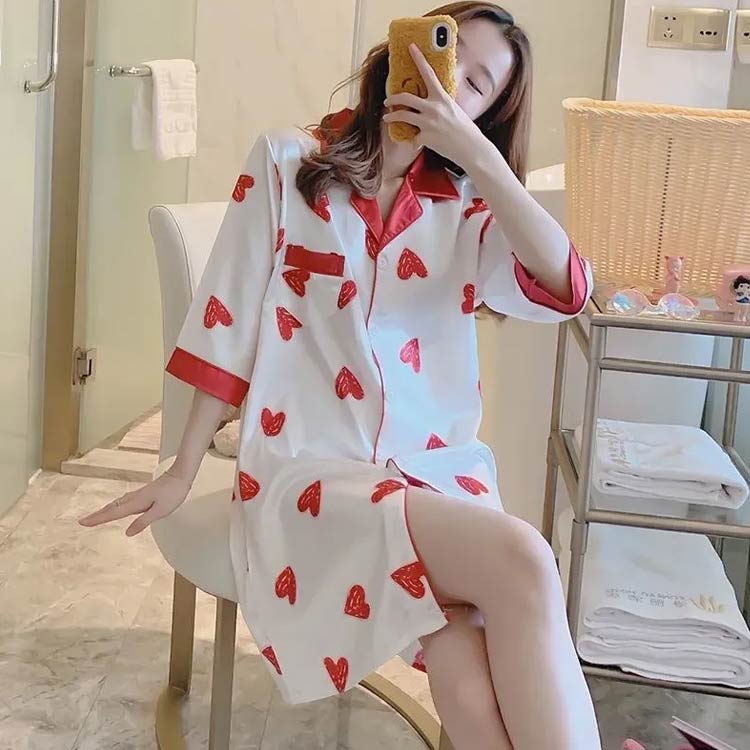 パジャマ ワンピース 前開き 半袖 ル