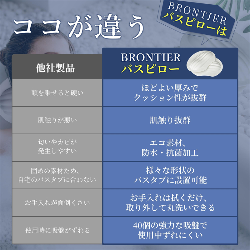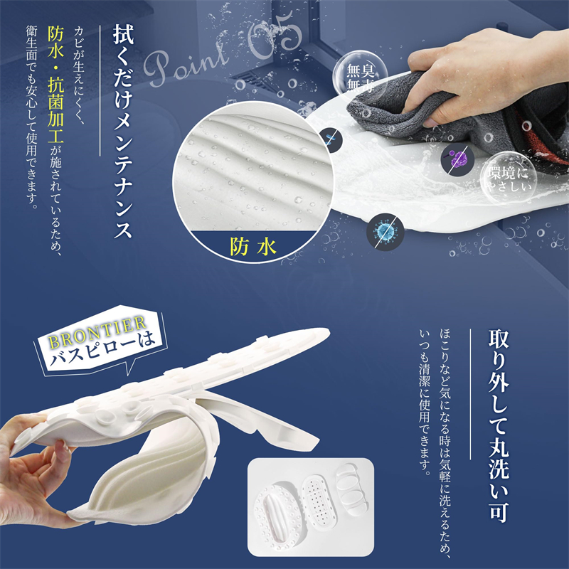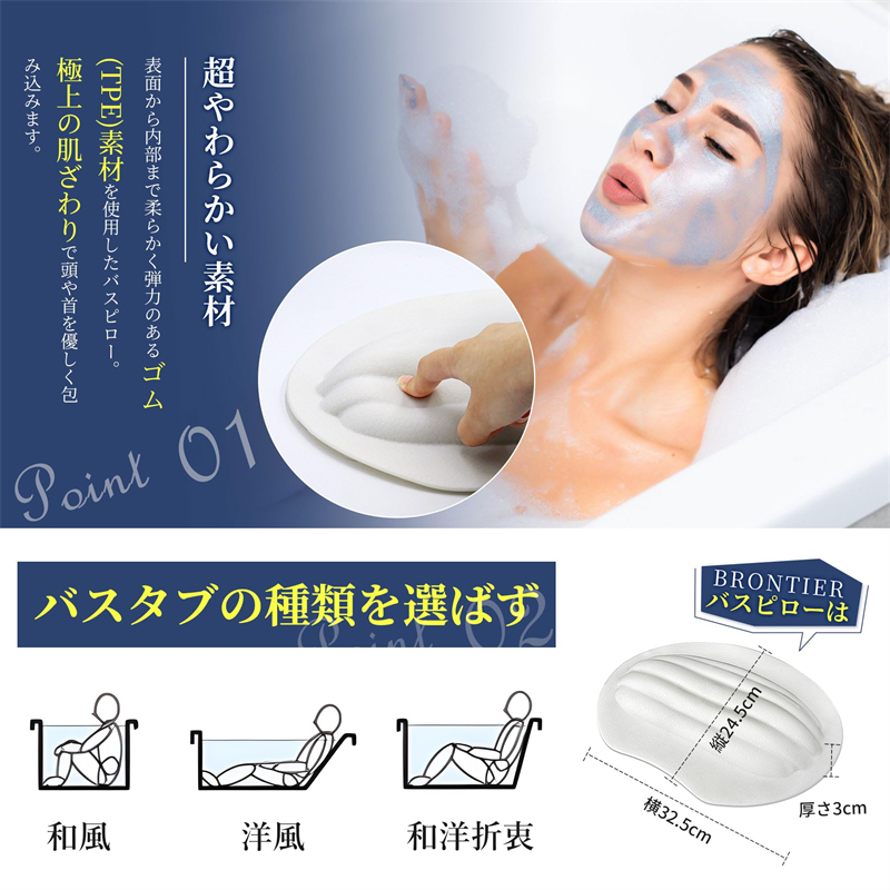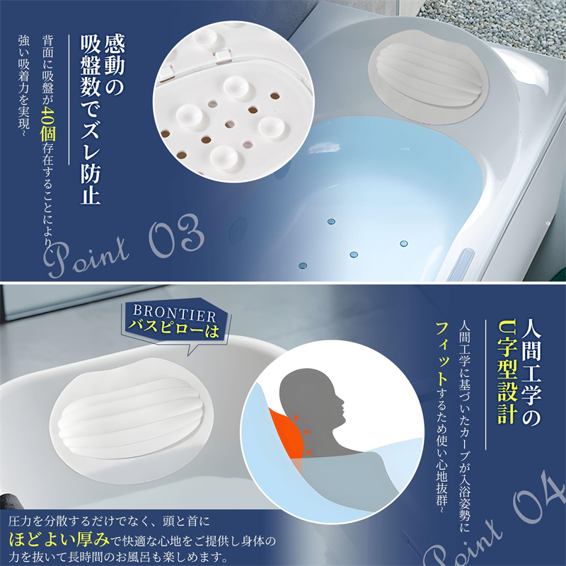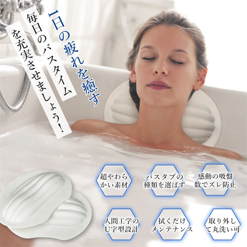 バスピロー お風呂 まくら お風呂枕 防水 防カビ カビない 超やわらかい 人間工学 U字型 3D構造 40個吸盤 滑り止め 取り外し可 丸洗い可 エコ素材 衛生 安定 フィット お手入れ簡単 バス枕