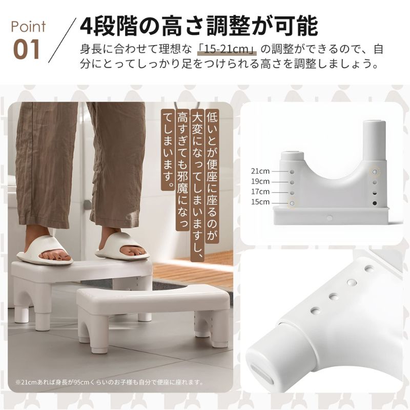 大きな世界へのステップアップ 15cm 17cm 19cm 21cm トイレ 脚立 練習 高さ調整可能新生活 解消 収納便利 洗面所 洋式 北欧 シンプル