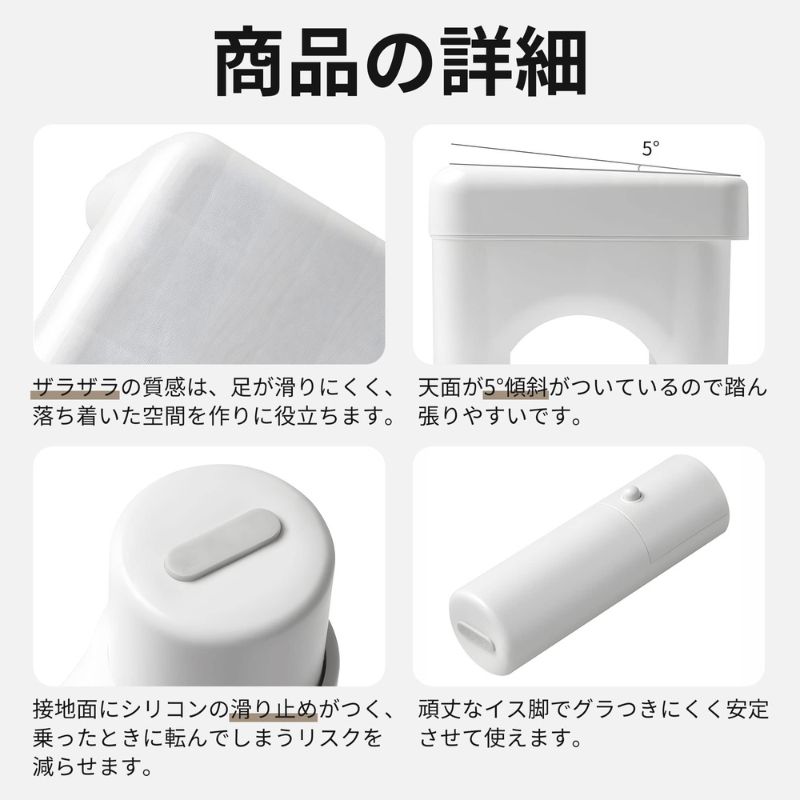 商品詳細商品名 子供トイレ踏み台サイズ 22cm×39cm×高さ調節可能15cm-21cm素材 ポリプロピレン (PP)色 ホワイト生産国 MADE IN PRC