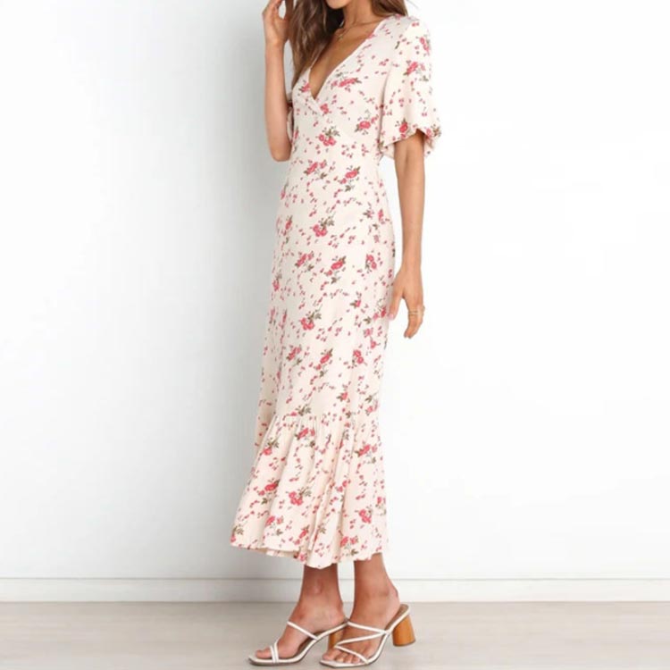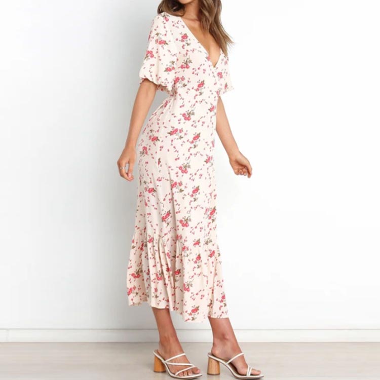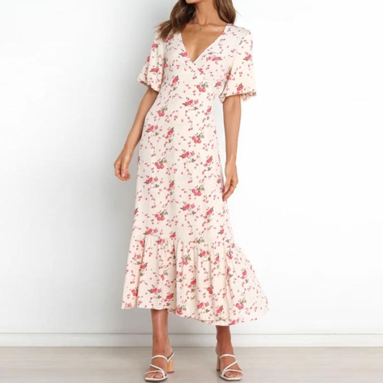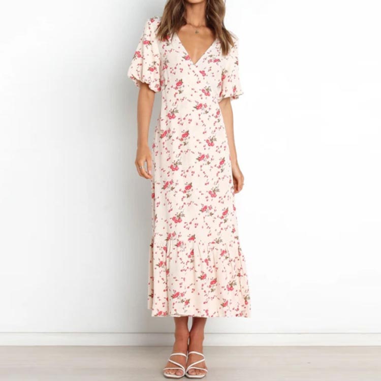 花柄 ワンピース ロング 夏 半袖 v