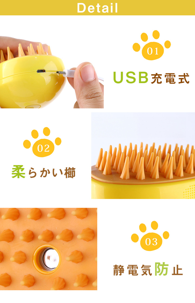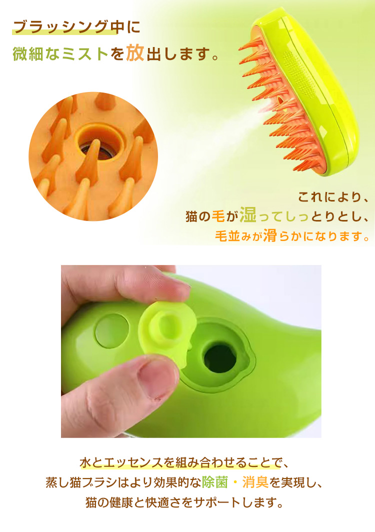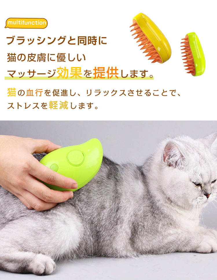 充電式 猫スリッカーブラシ もつれや抜け毛を取り除く ブラシ マッサージ 猫用品 スプレーマッサージ櫛 ペットブラシ 新作