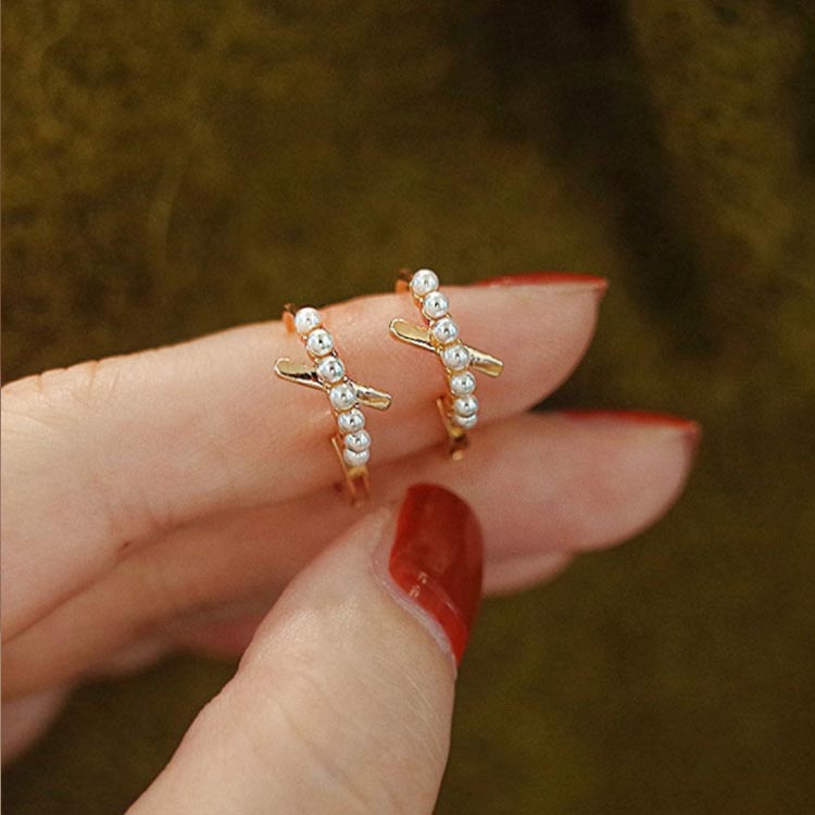 柔らかな光を放つパールとシンプルなデザインが耳元を上品に演出。