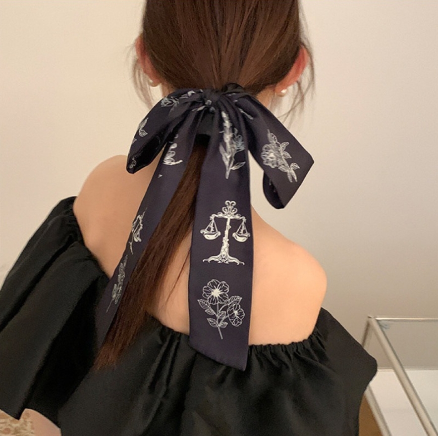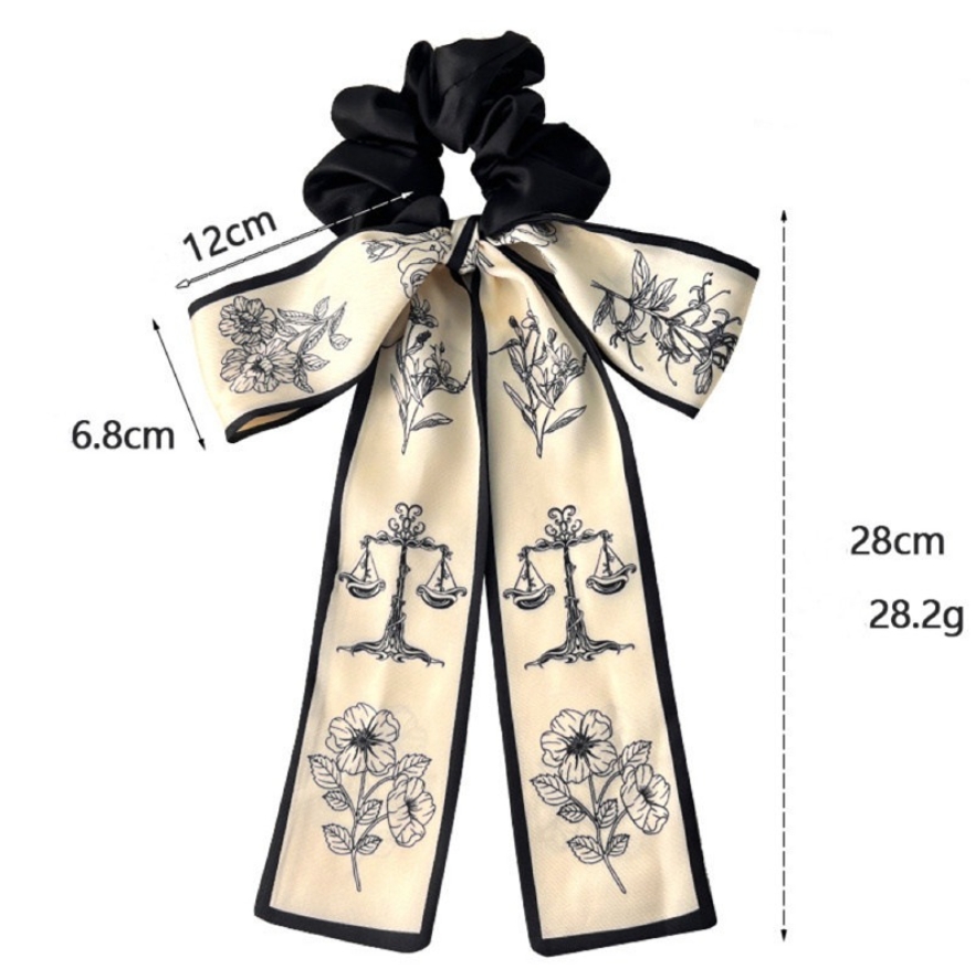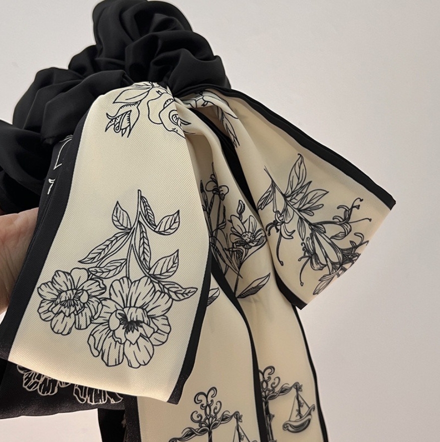 ロングリボンシュシュ ヘアゴム 花柄シ