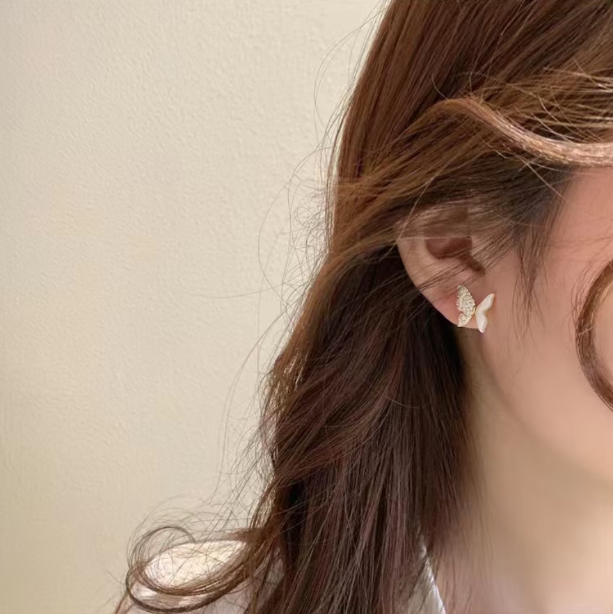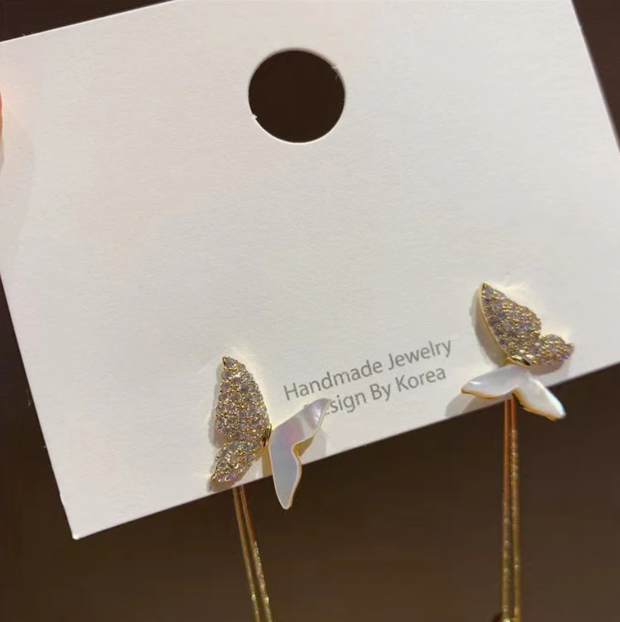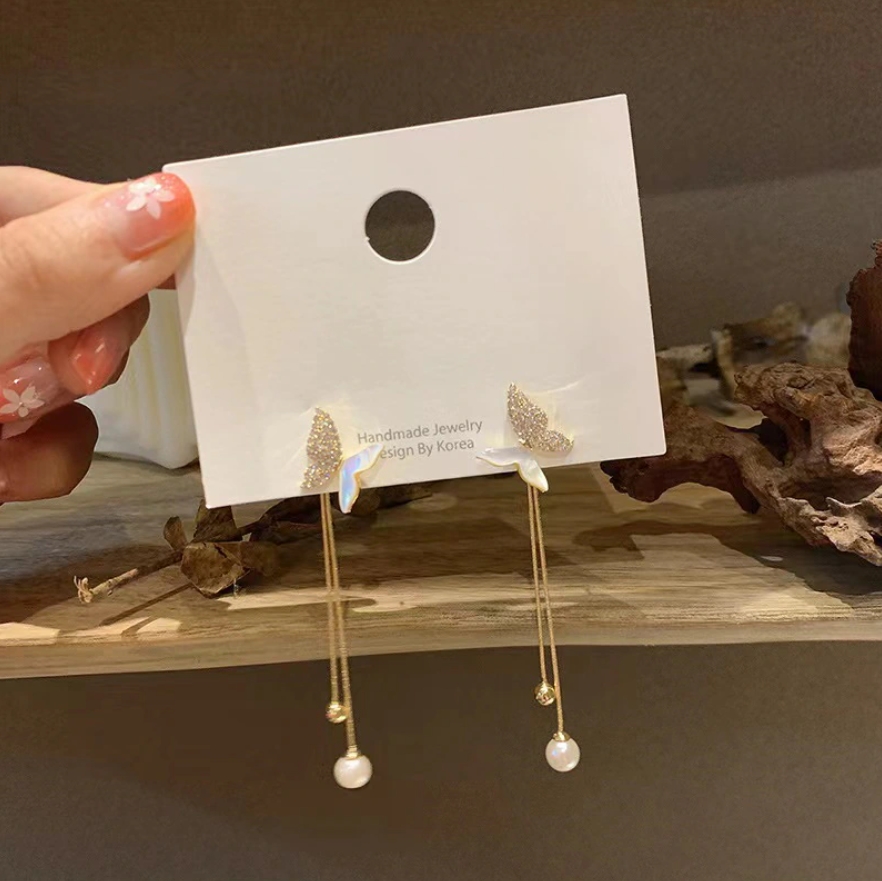 パールロングピアス バタフライ ビジュ