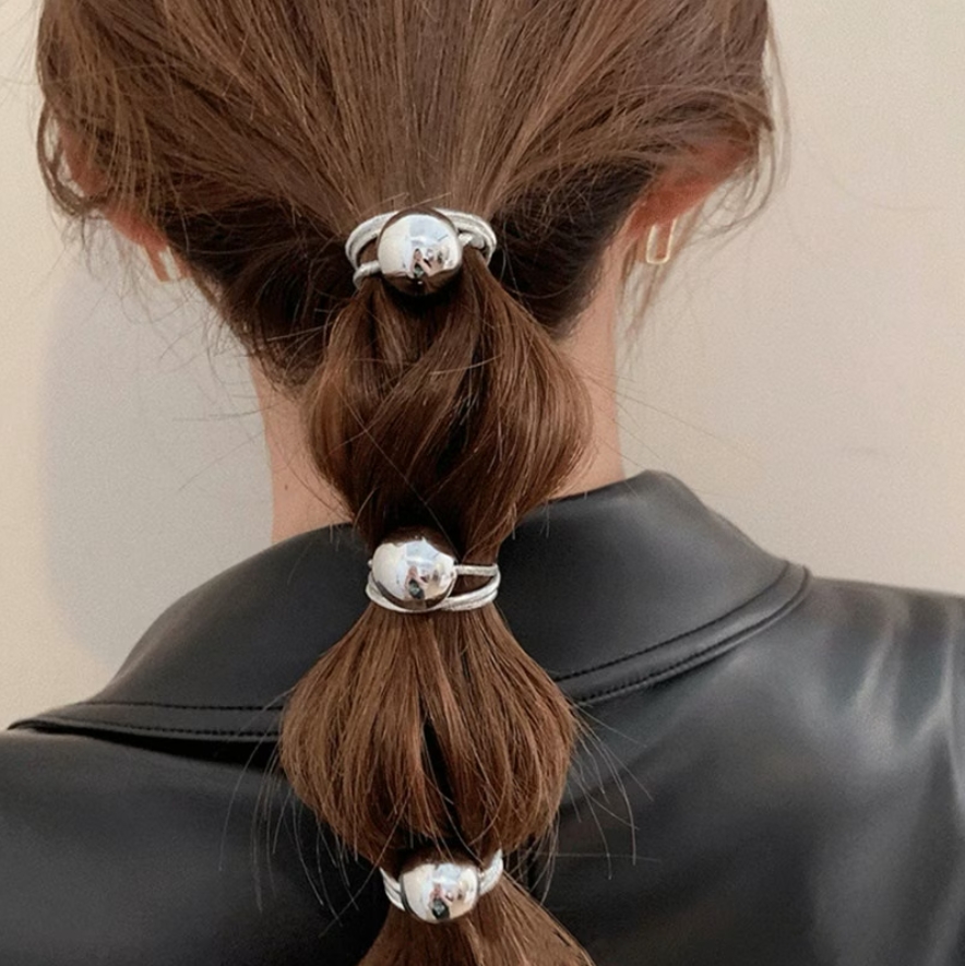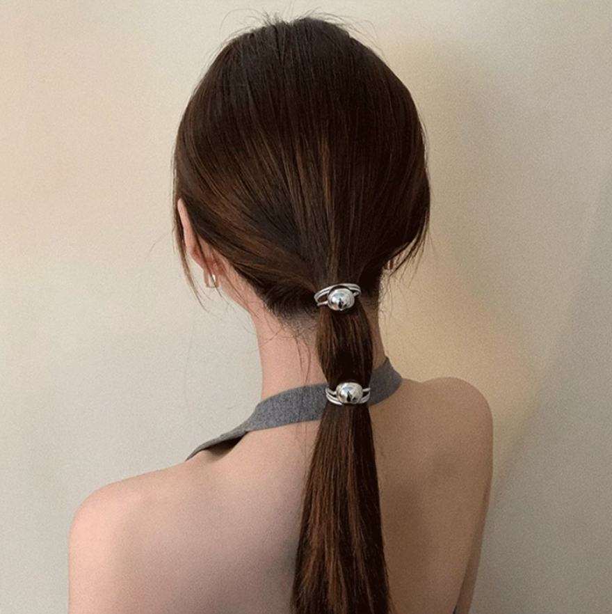 メタルボールヘアゴム 2点セット シル