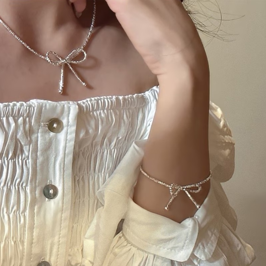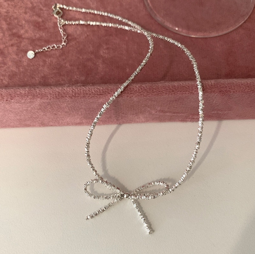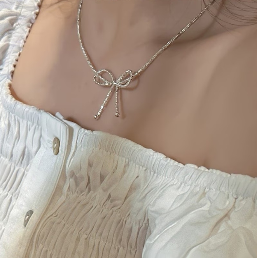 リボンモチーフネックレス レデイースネックレス シンプル おしゃれ 大人可愛い シルバー トレンド レデイースアクセサリー