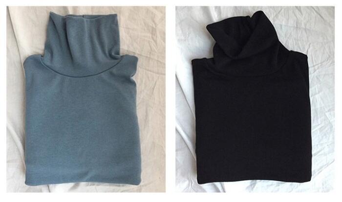 カットソー ハイネック 無地 トップス
