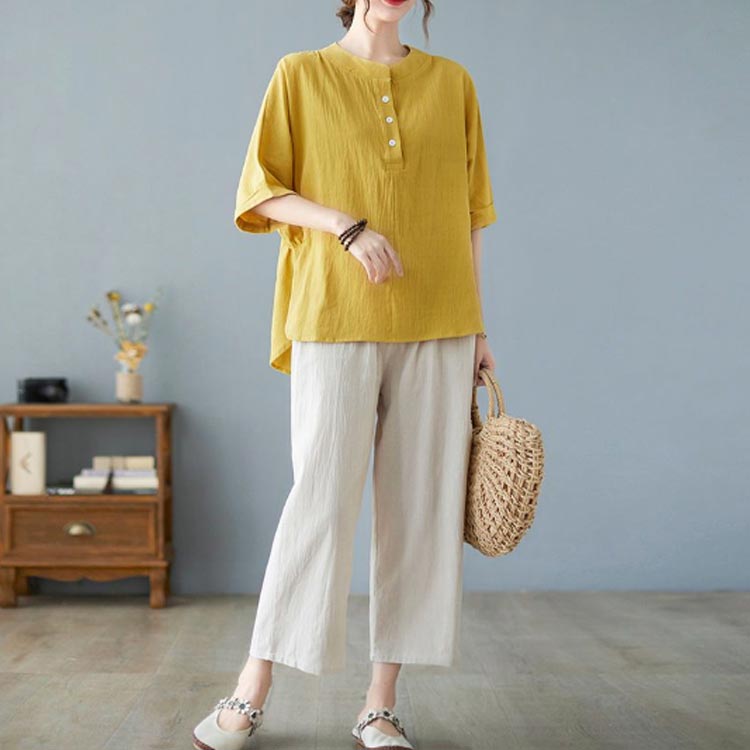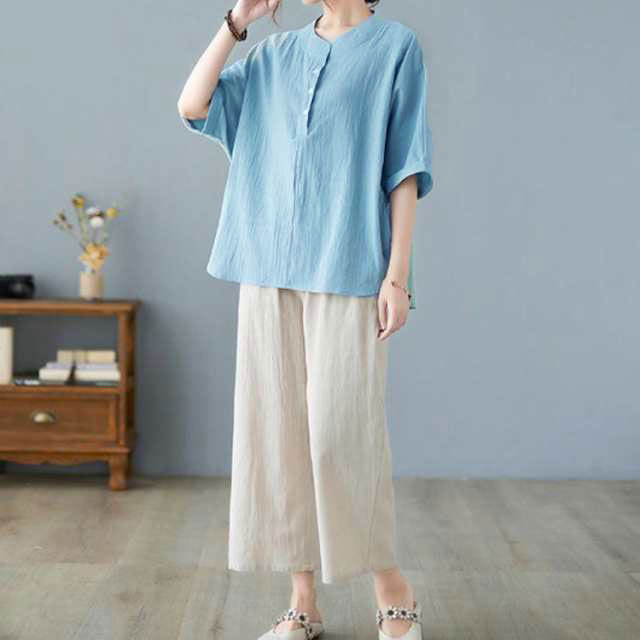 7分丈 半袖 シャツ ブラウス レディ