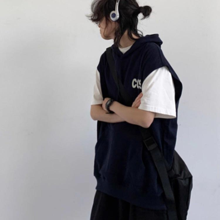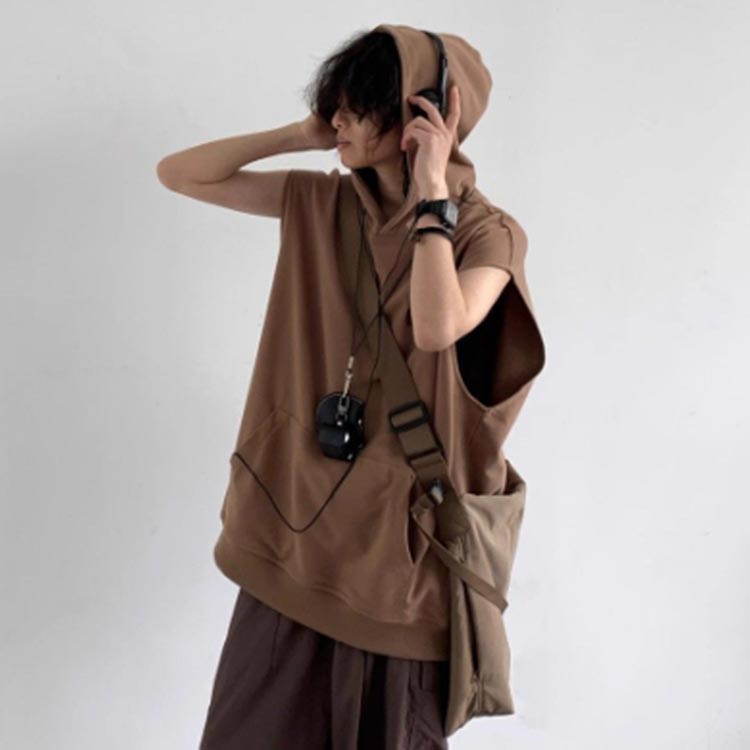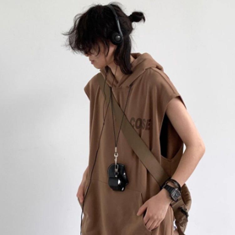 ノースリーブパーカー フード付き タン