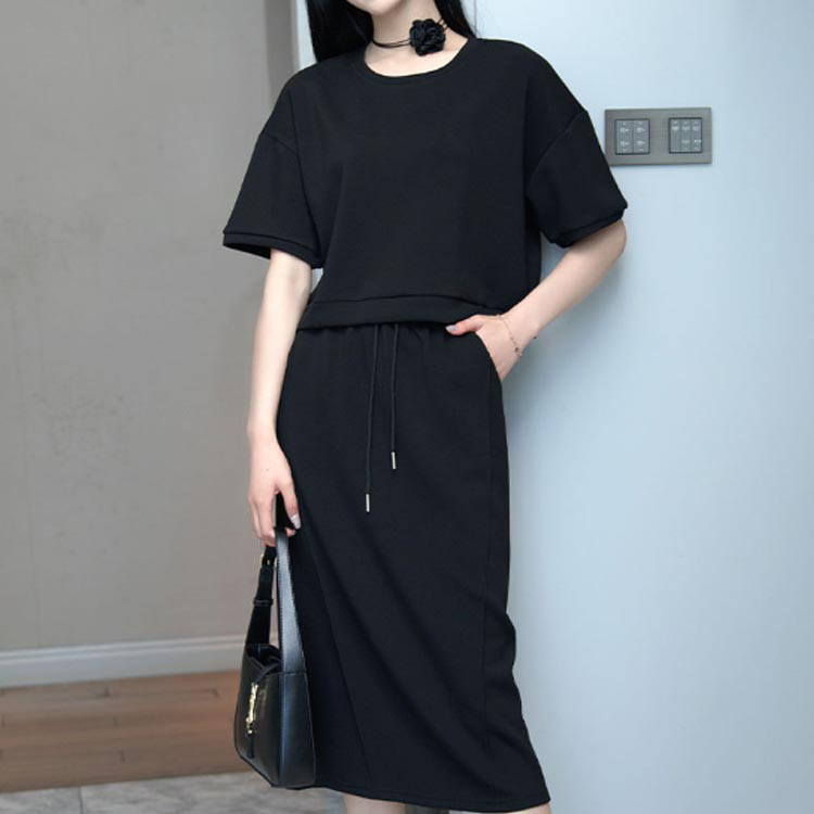 シアー ドッキング ロング プリーツ ワンピース 女性 レディース ドレス ブラウス 半袖 春 夏 秋 冬 透け感 単色 無地 シフォン プチハイネック タック パフスリーブ Aライン 結婚式 謝恩会