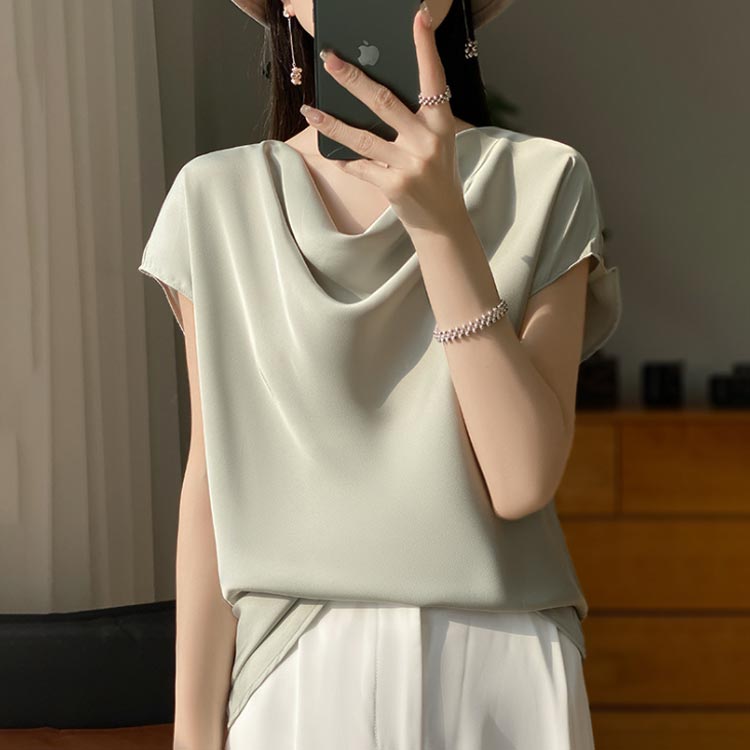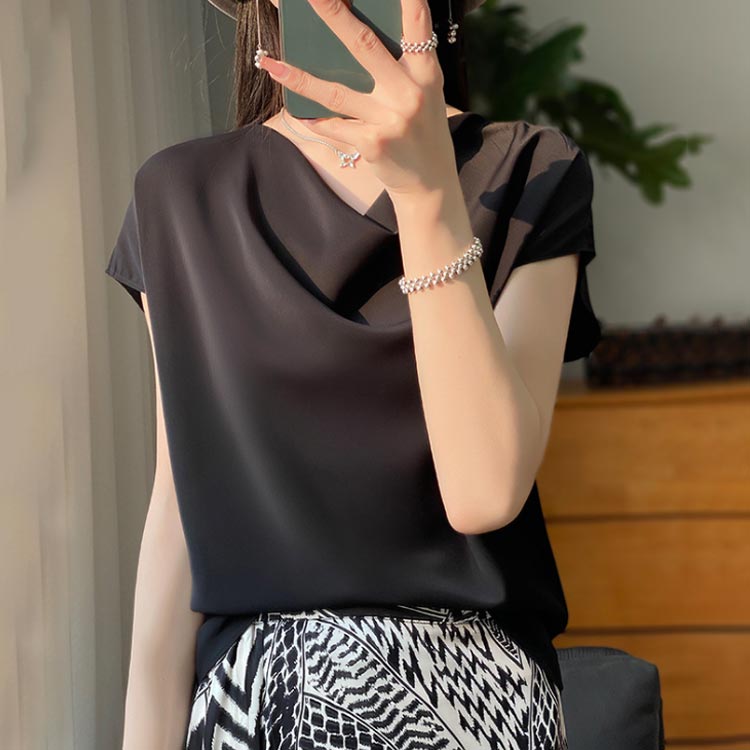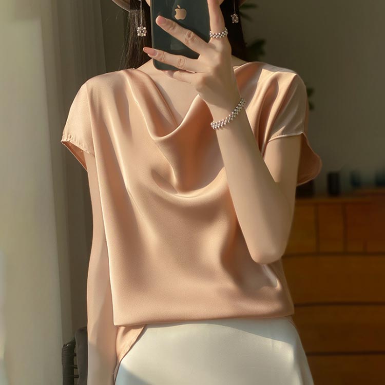 シルク混 ケープ風 光沢 サテンブラウ