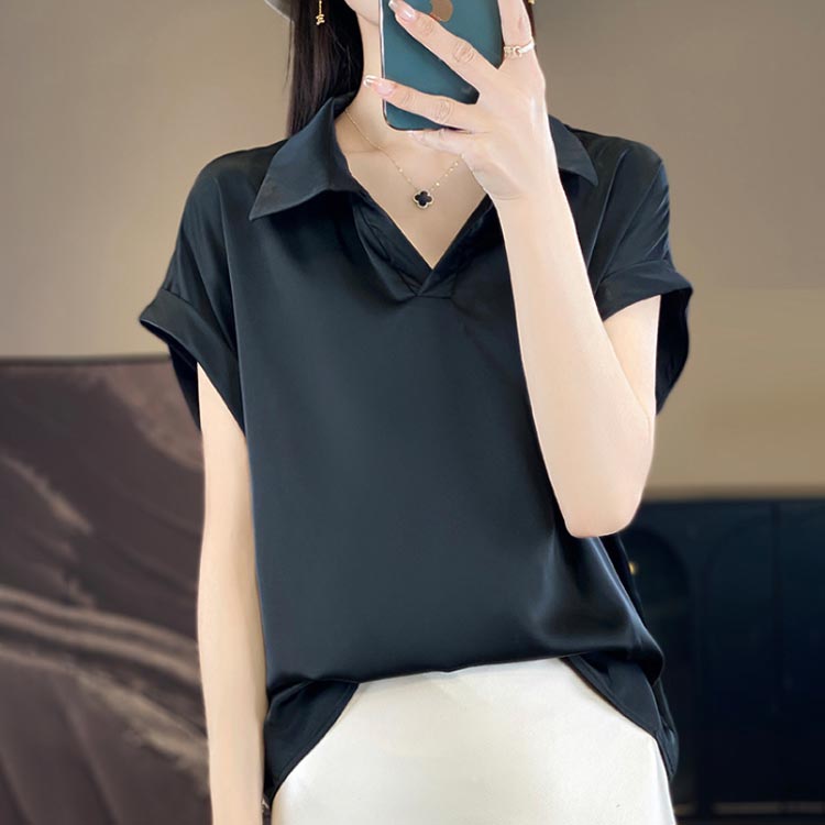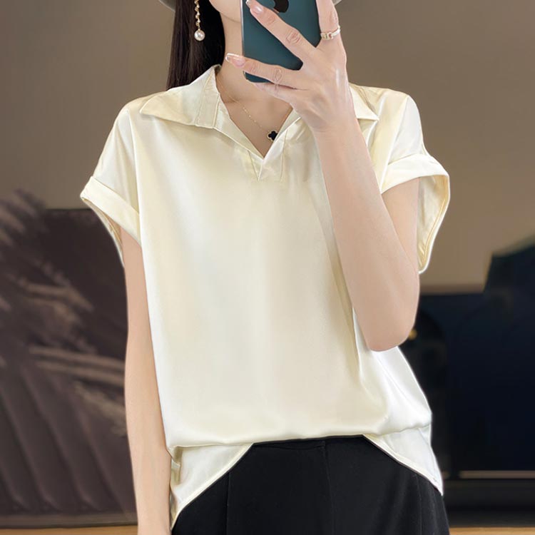 サテンシャツ シルク混 フレンチ サテ
