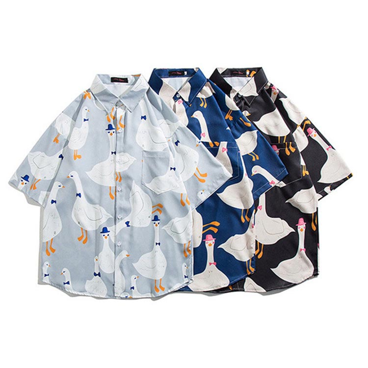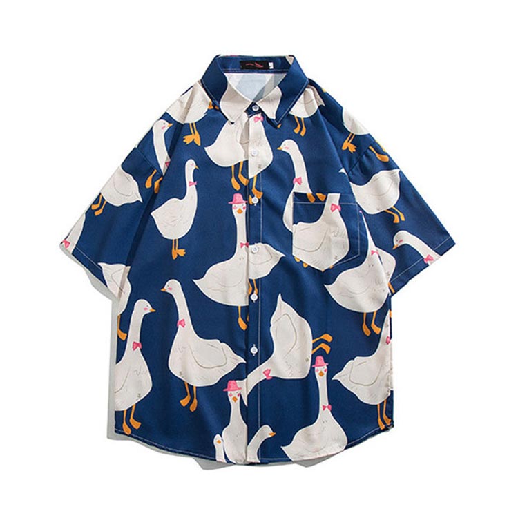 夏服 半袖シャツ メンズ アヒル柄 シ