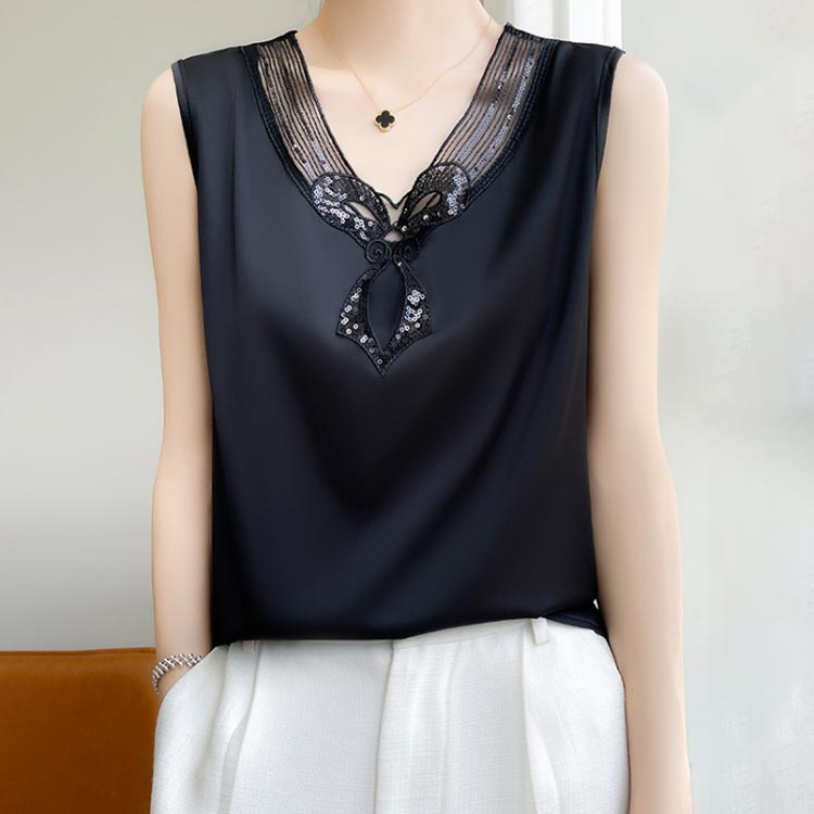 トップ おしゃれ 黒 キャミソール レ