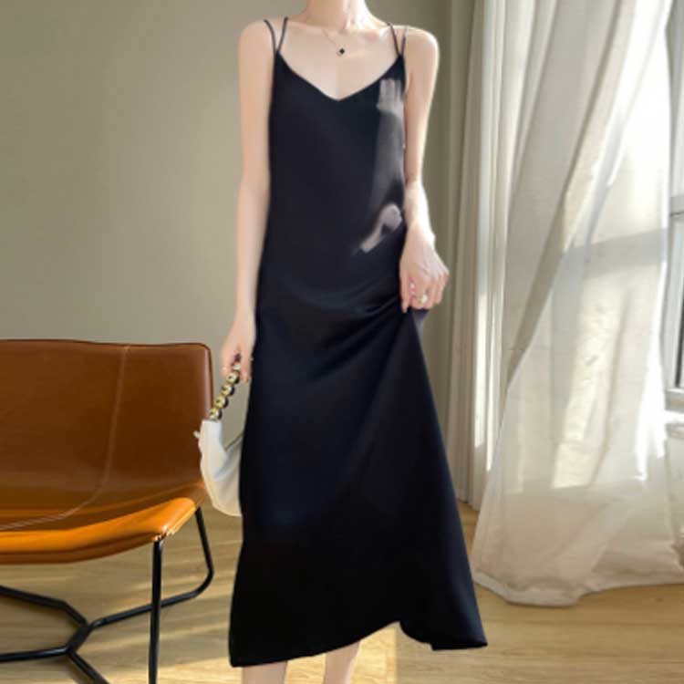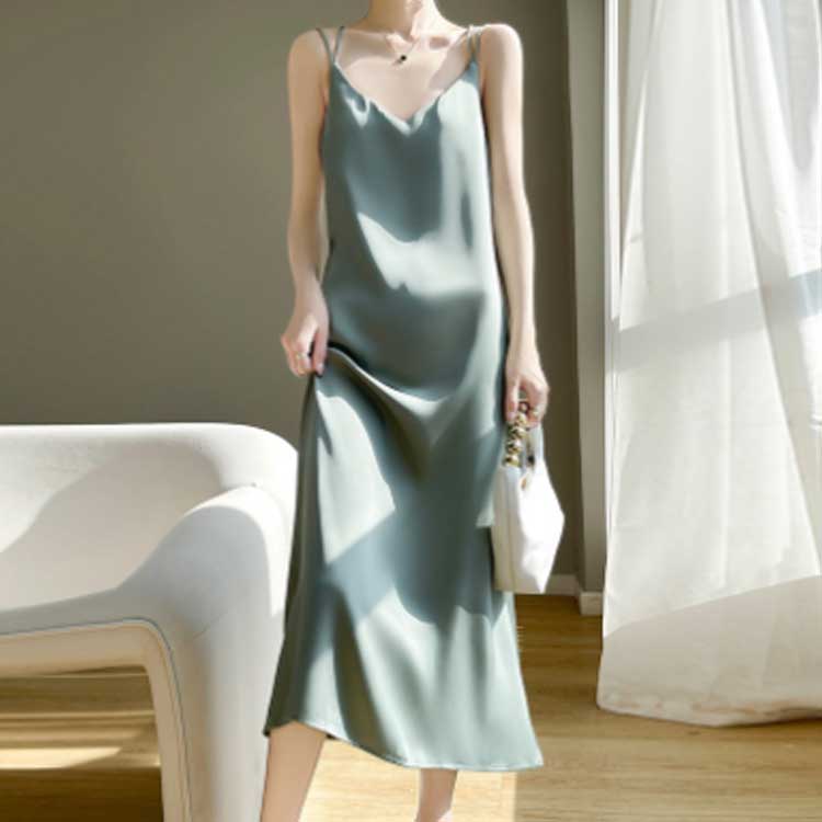 サテン ロング キャミワンピース ワン