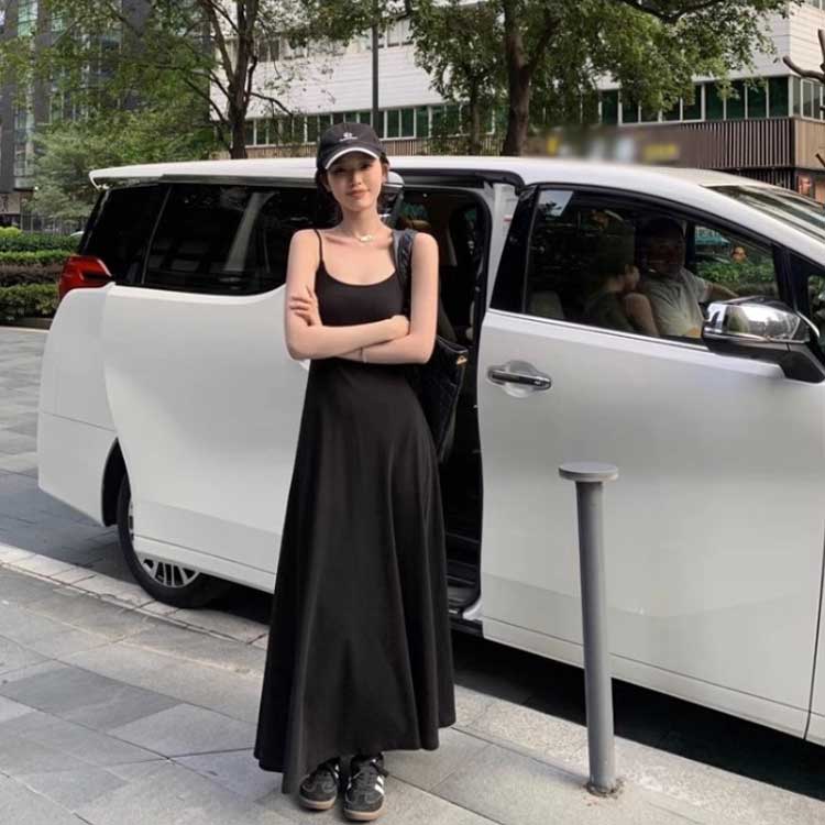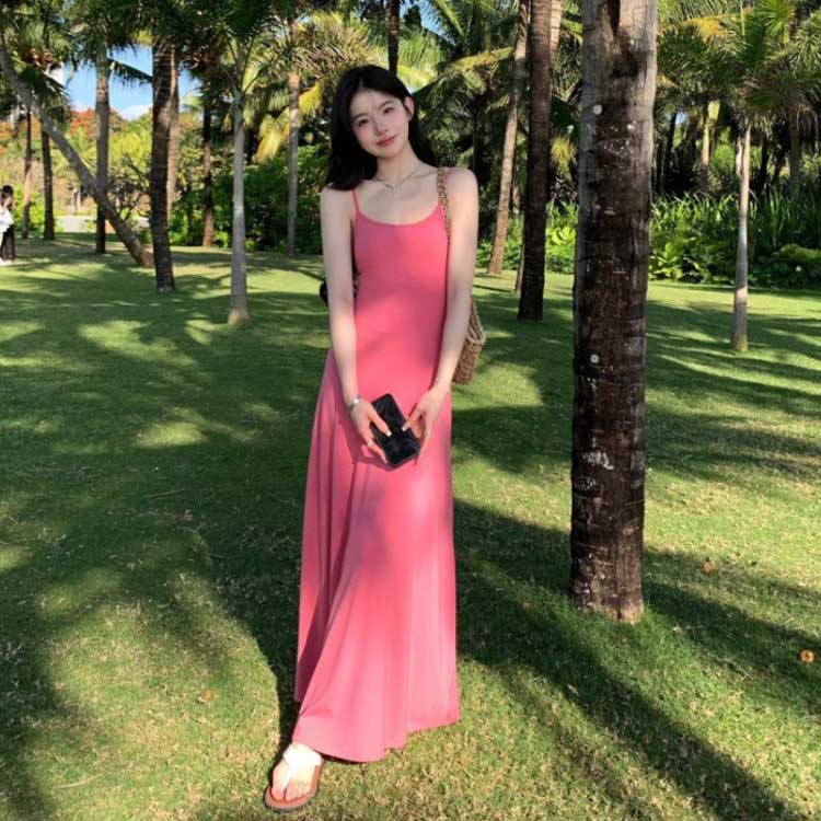 ピンク カップ付きワンピース ロング丈