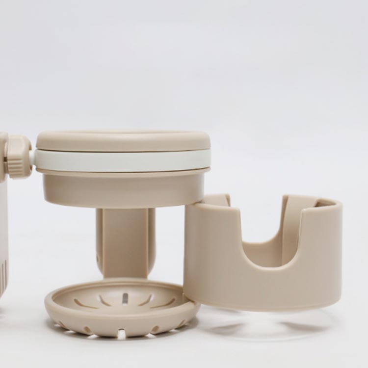 【ツイン仕様】メインホルダー・サブホルダーがあり、使わない時は1つに収納。様々なサイズのドリンクをシリコンストッパーで固定します。