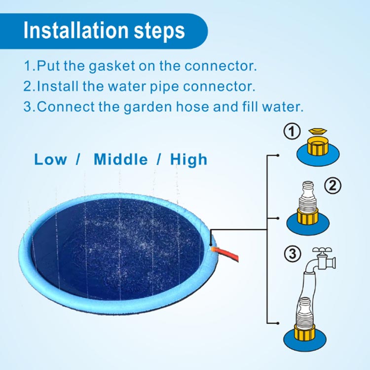 【噴水の高さ調節】水量で、噴水の高さを調節するので蛇口の調節で簡単に噴水の高さ調節ができます。サイズ直径100cmサイズについての説明付属品:リペアシール*1、パッキン*1、ジョイント*1※商品のサイズは手作業で測定させて頂いておりますので、若干の誤差があります。素材PVC色ブルー備考●サイズ詳細等の測り方はスタッフ間で統一、徹底はしておりますが、実寸は商品によって若干の誤差(1cm~3cm )がある場合がございますので、予めご了承ください。