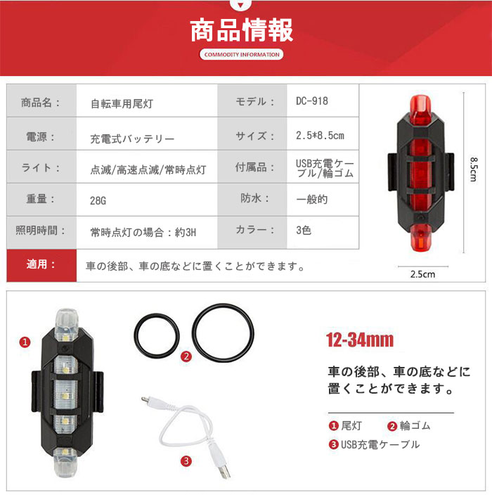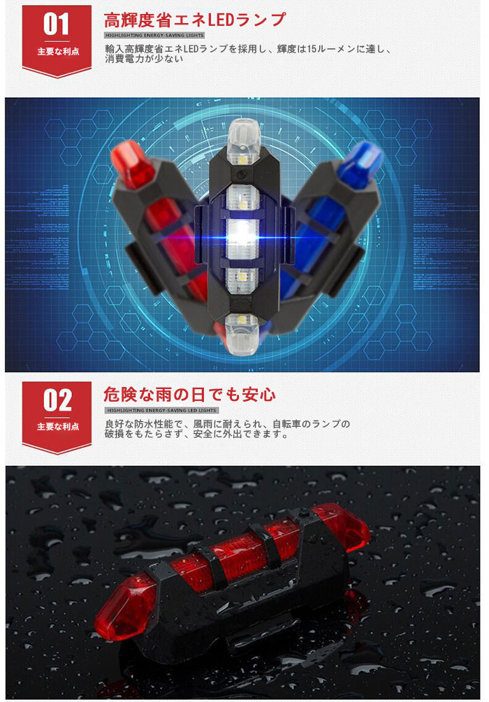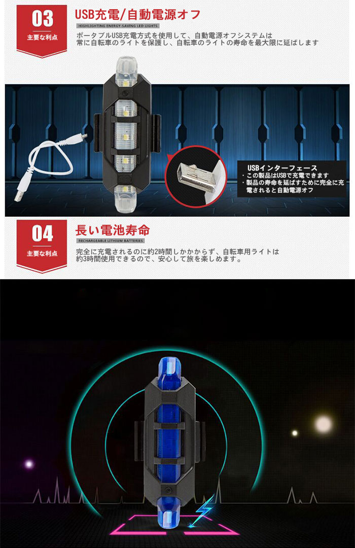 夜間走行ライト 点滅 3段階調光 バイ